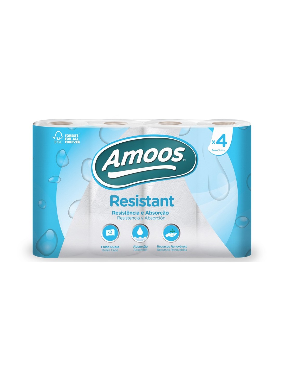 Papel de cocina Amoos Resistant. 2 capas. 42g/m². Paquete de 4 rollos.