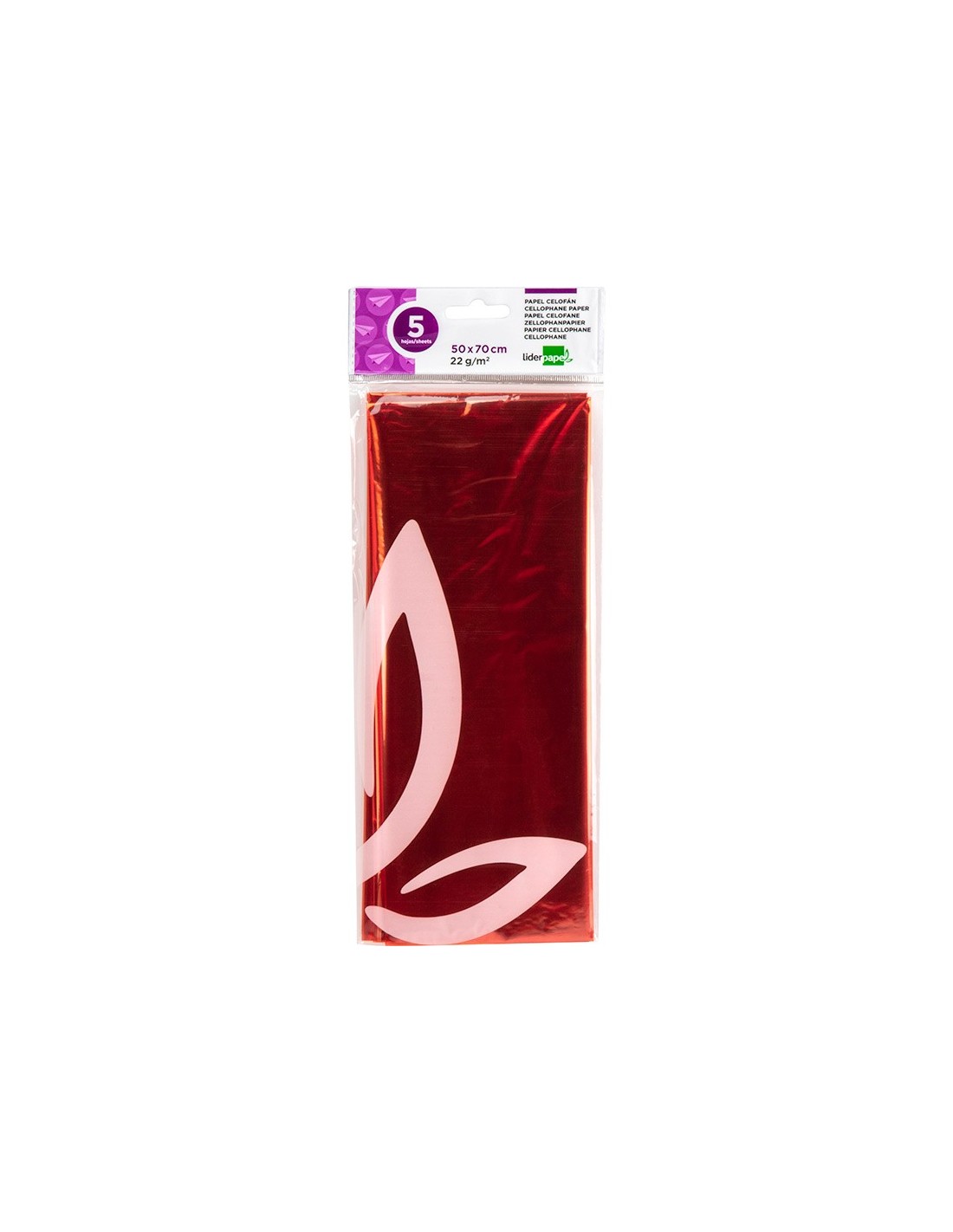 PAPEL CELOFAN LIDERPAPEL 50X70 CM 22G/M2 BOLSA DE 5 HOJAS NARANJA