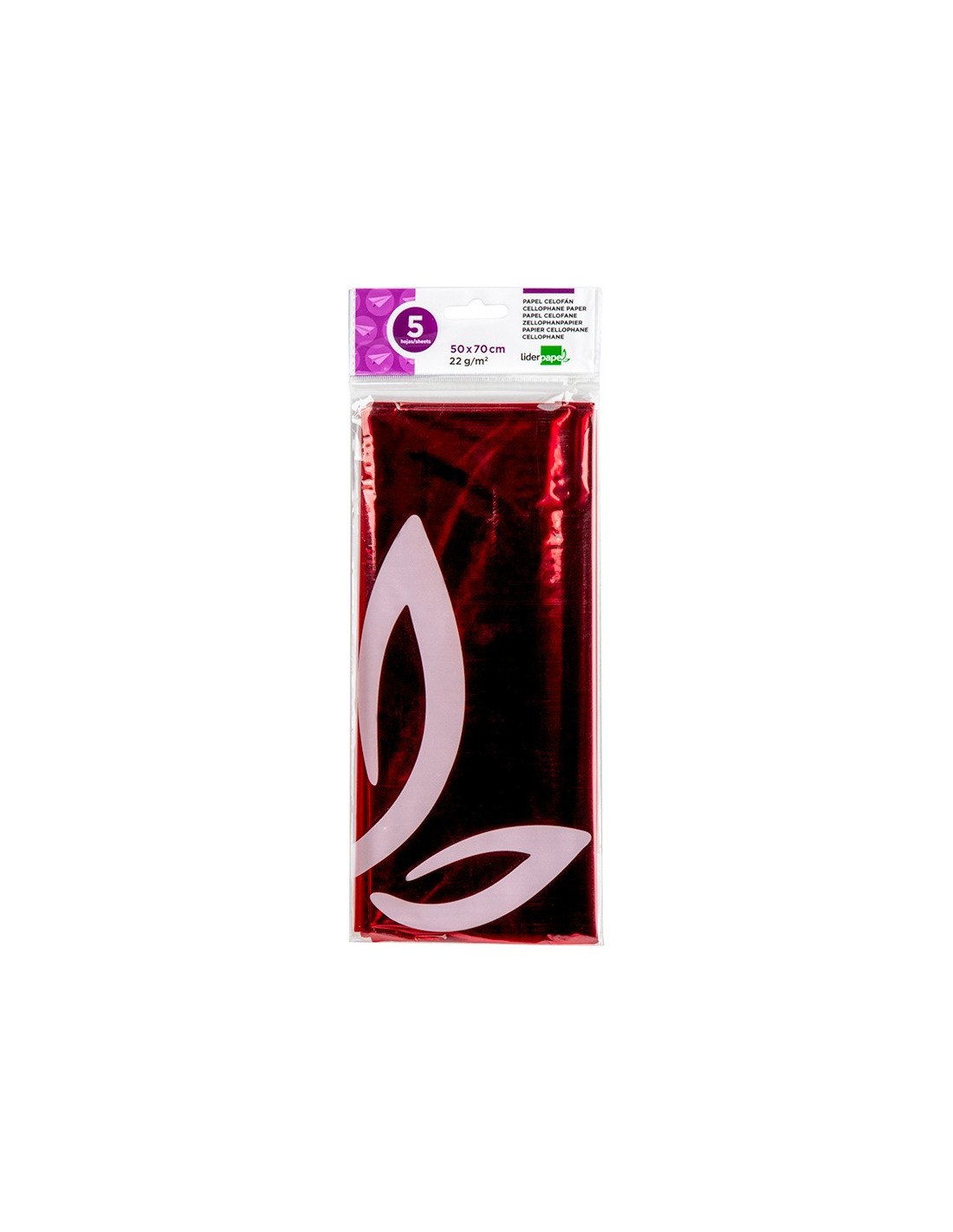 PAPEL CELOFAN LIDERPAPEL 50X70 CM 22G/M2 BOLSA DE 5 HOJAS ROJO