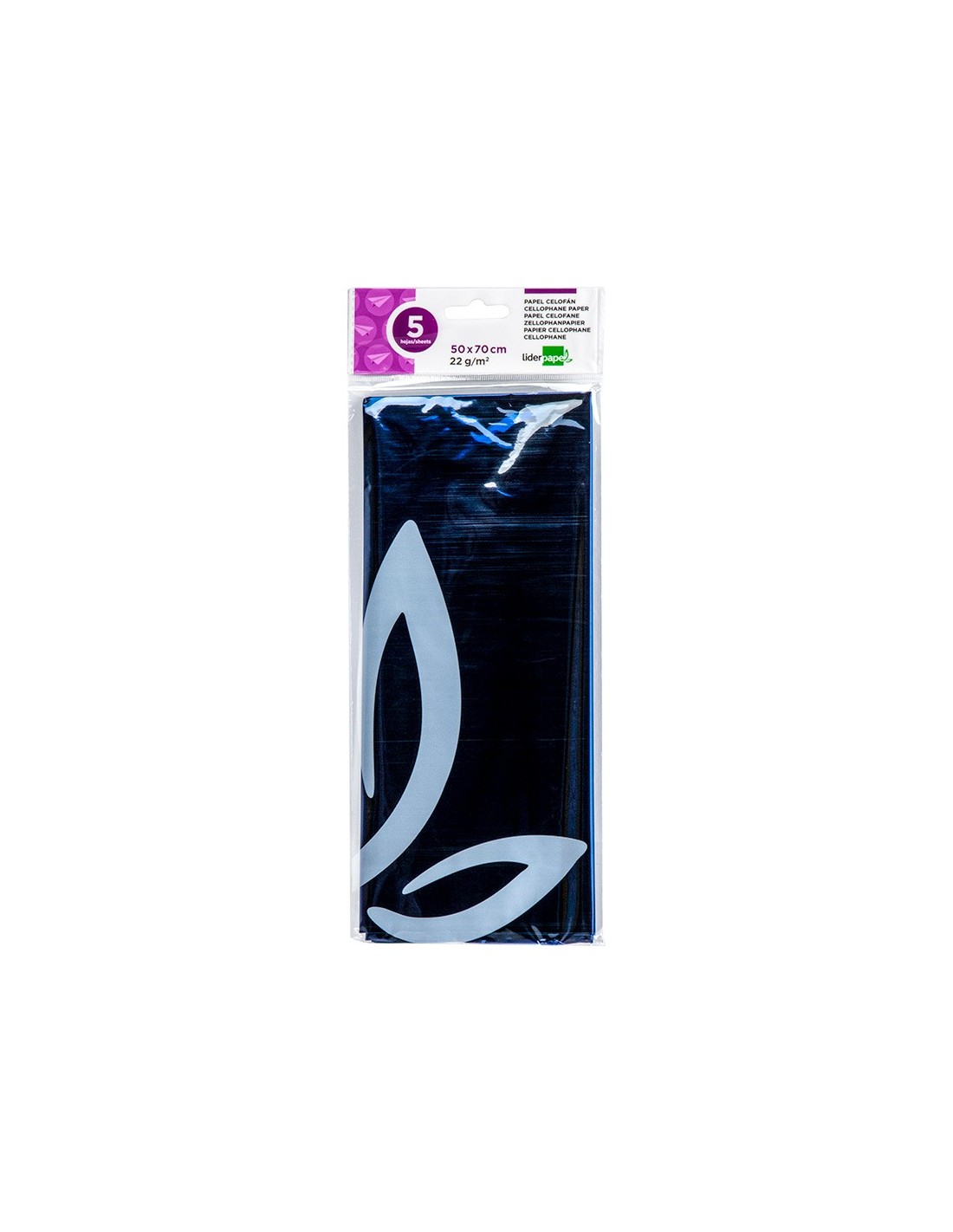 PAPEL CELOFAN LIDERPAPEL 50X70 CM 22G/M2 BOLSA DE 5 HOJAS AZUL