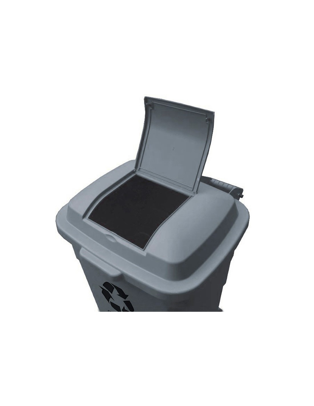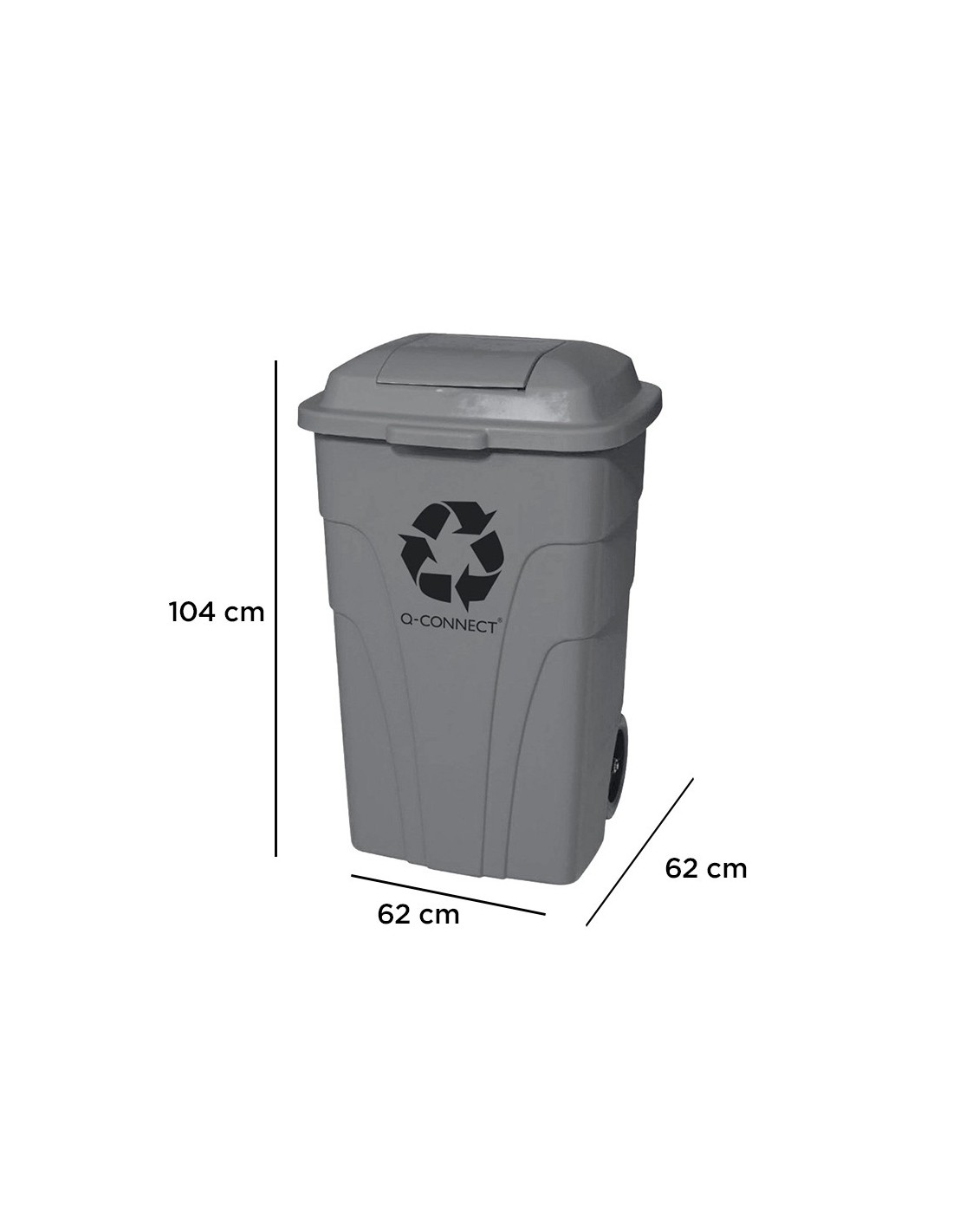 Contenedor de gran capacidad con apertura mediante tapa superior. Posee 2 ruedas que hacen muy fácil su transporte. Fabricado en poliestireno de alta densidad. Capacidad de 240 litros. Medidas: 61 x 104 x 62 cm.