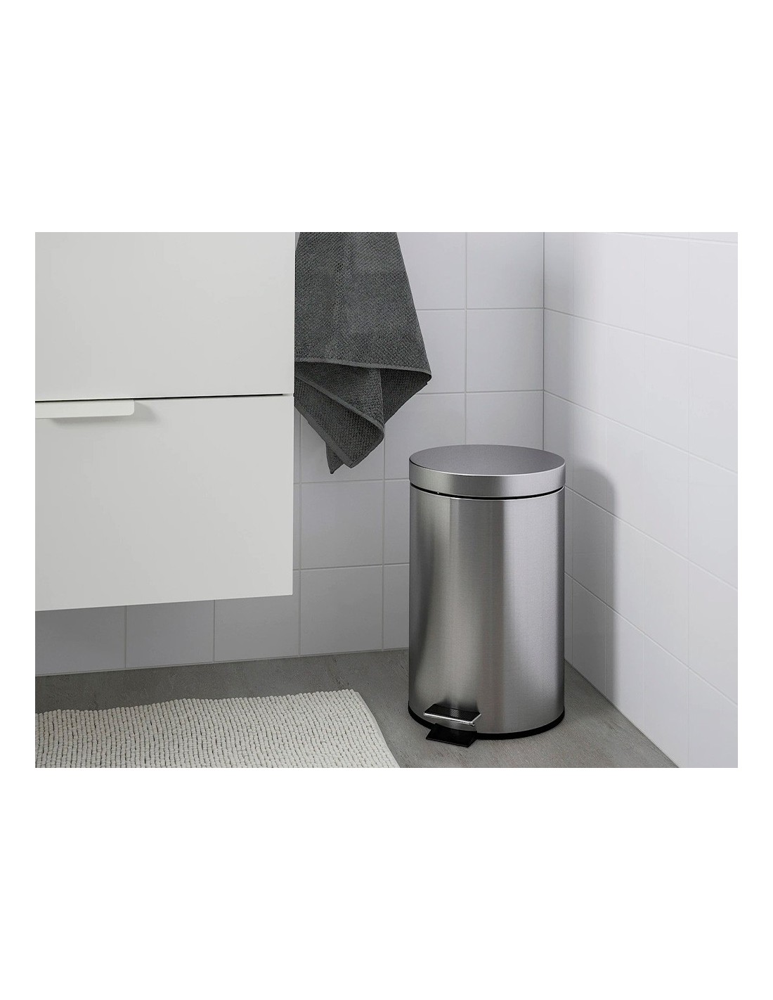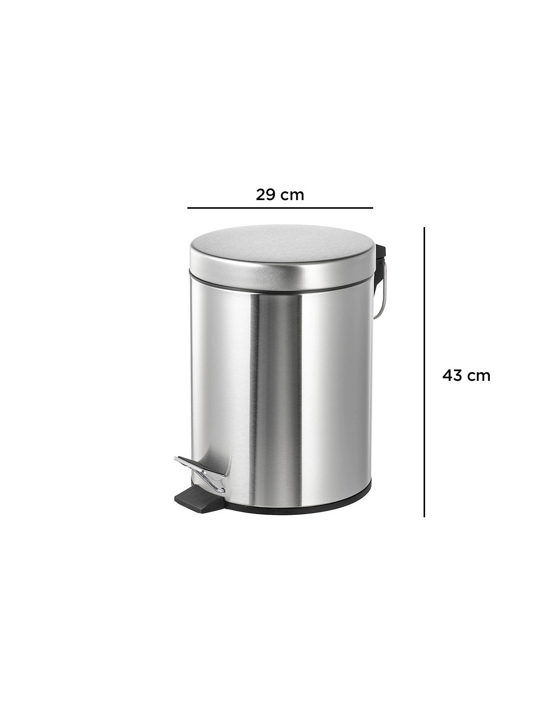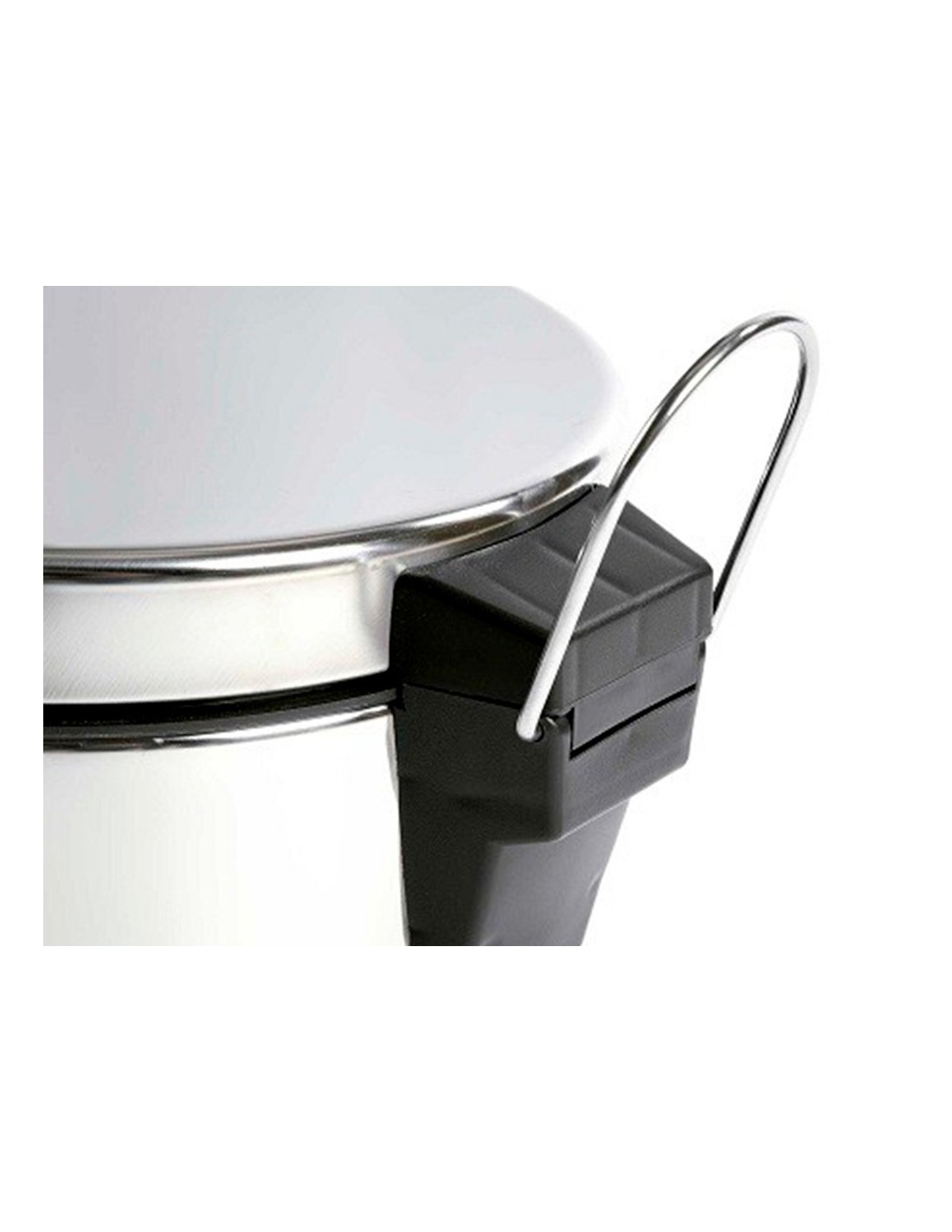 Papelera fabricada en metal con acabado espejo. Con pedal para una mayor comodidad.