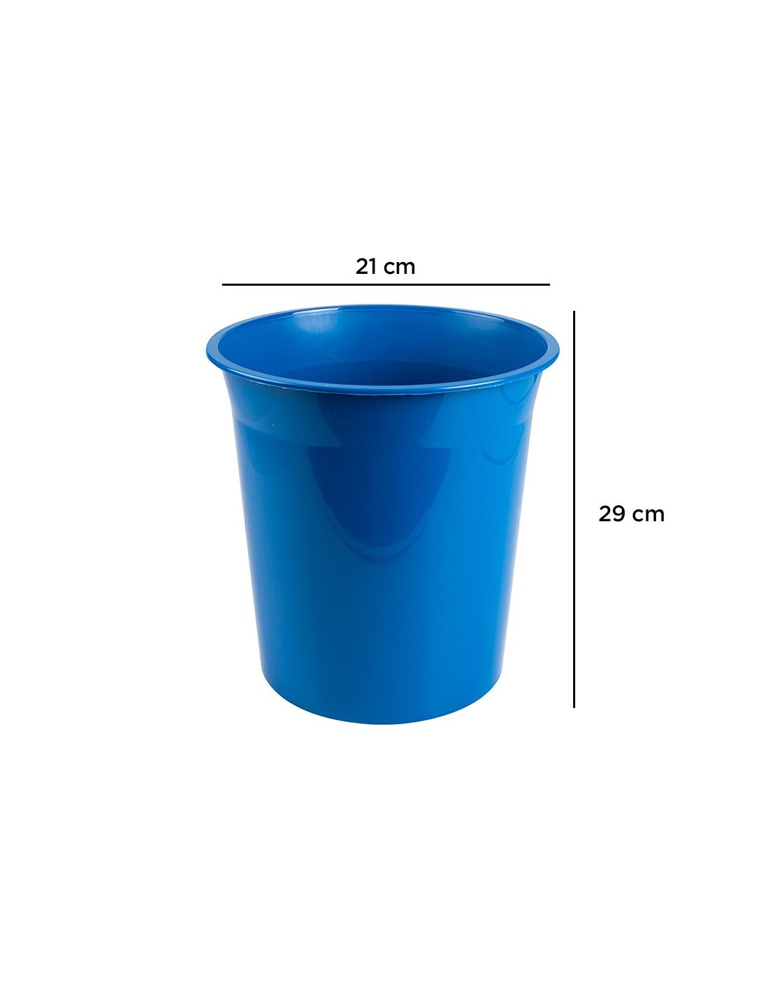 Papelera de plástico muy resistente. Capacidad: 13 litros. Medidas: Ø21 x 29 cm.