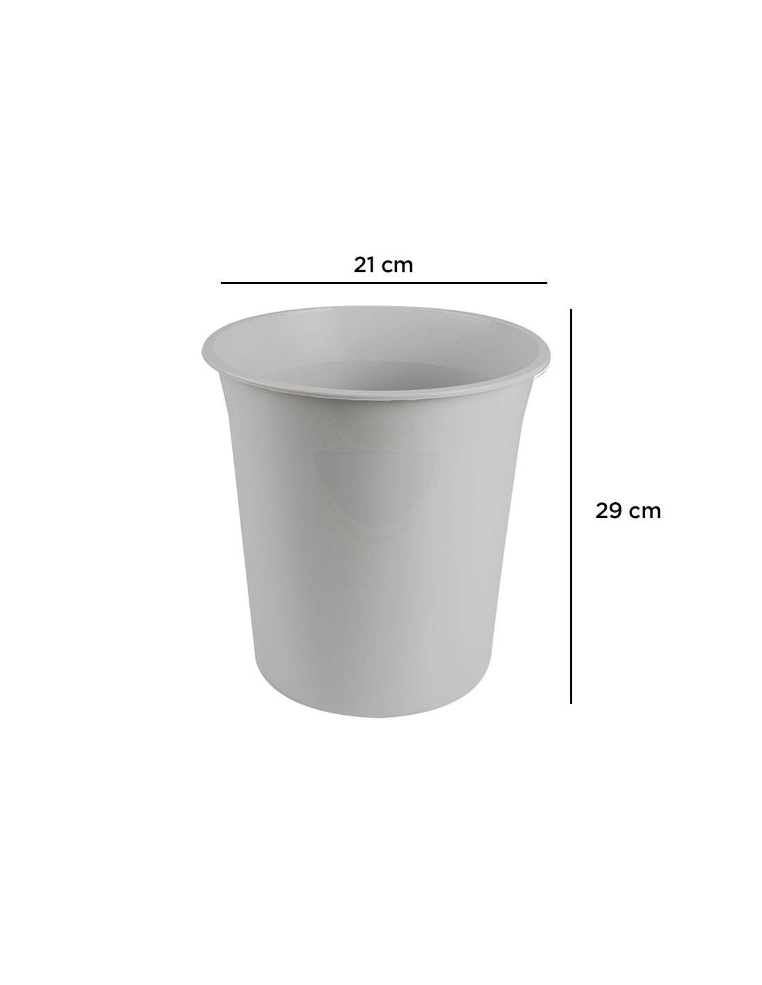 Papelera de plástico muy resistente. Capacidad: 13 litros. Medidas: Ø21 x 29 cm.