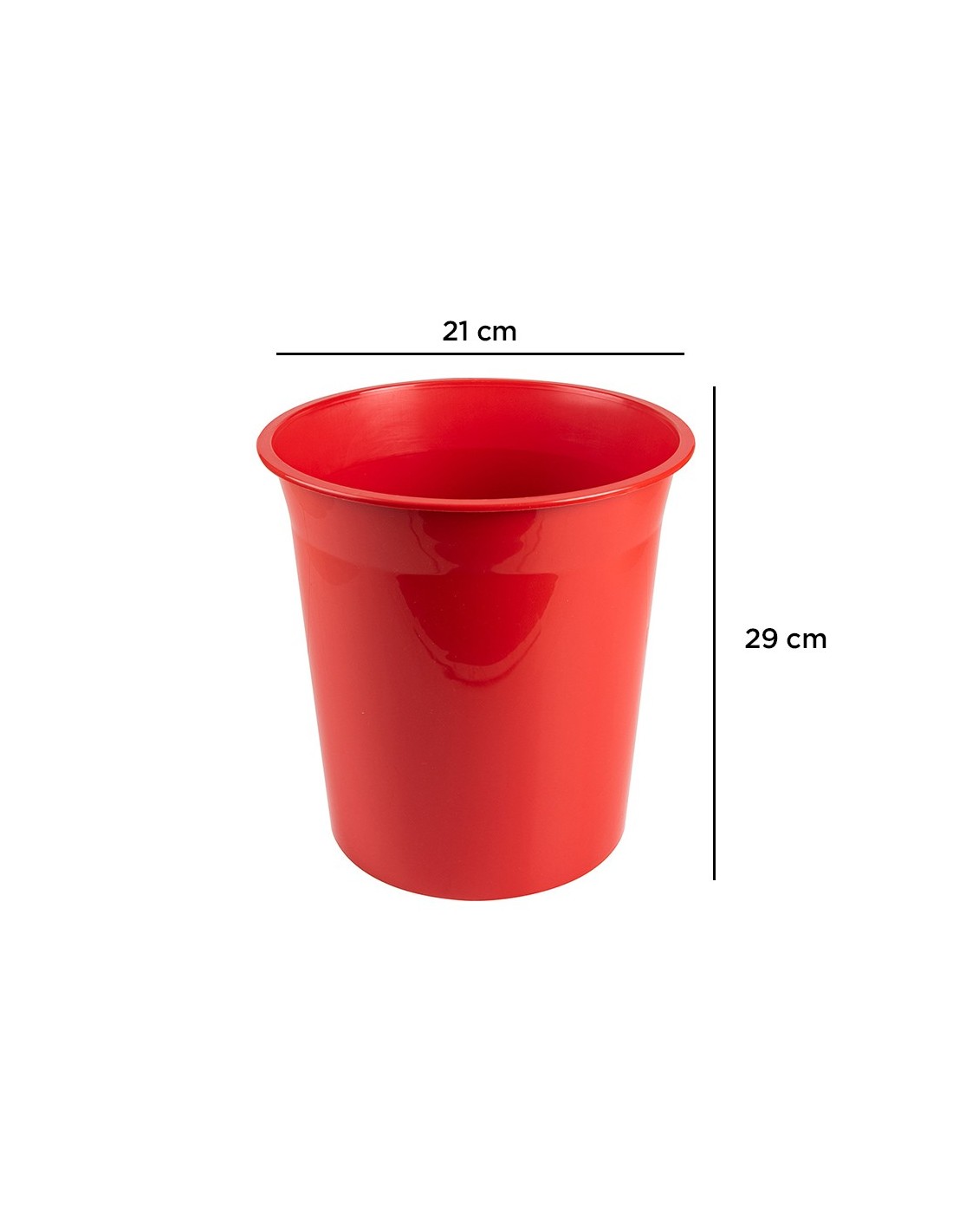 Papelera de plástico muy resistente. Capacidad: 13 litros. Medidas: Ø21 x 29 cm.