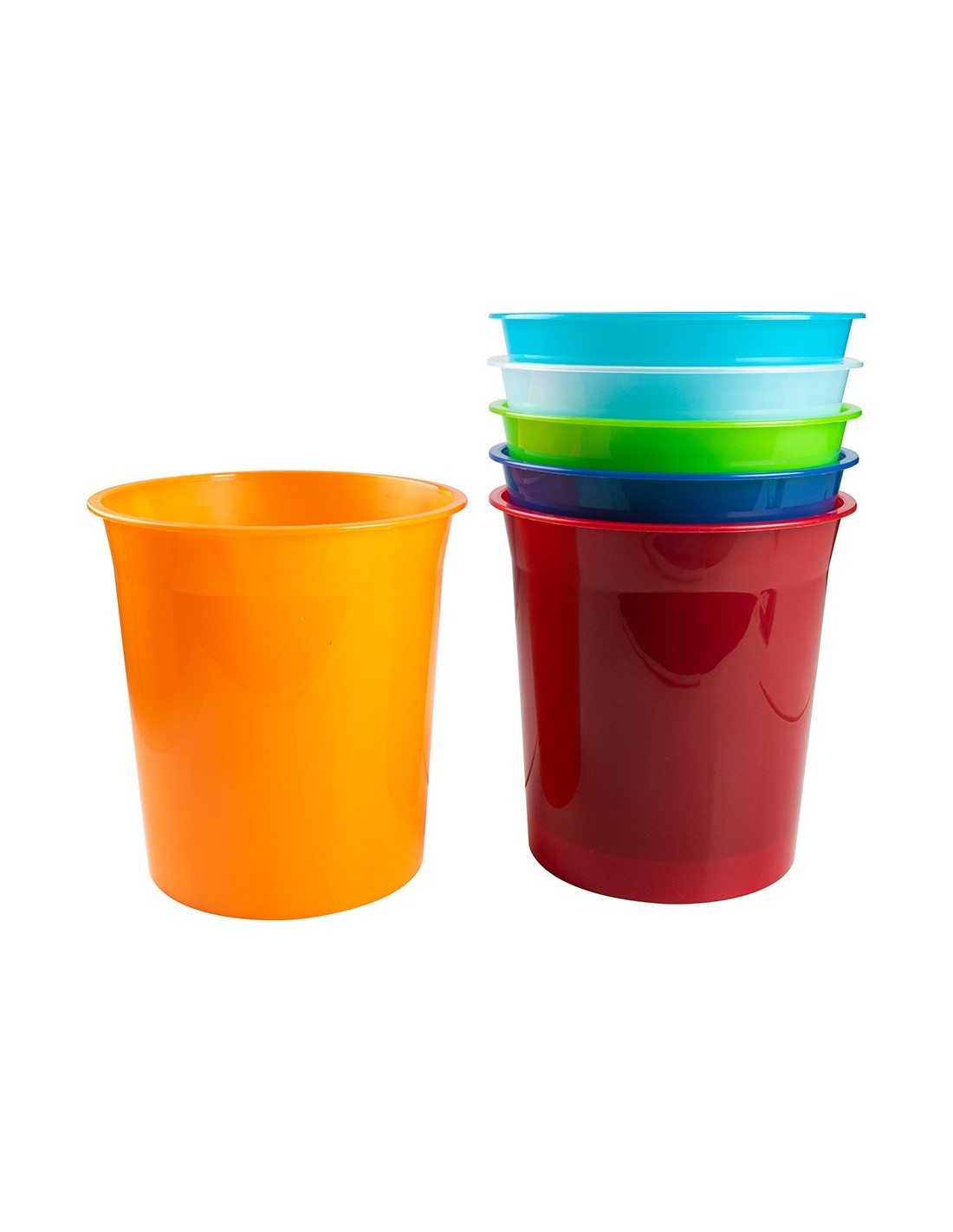 Papelera de plástico muy resistente. Capacidad: 13 litros. Medidas: Ø21 x 29 cm.