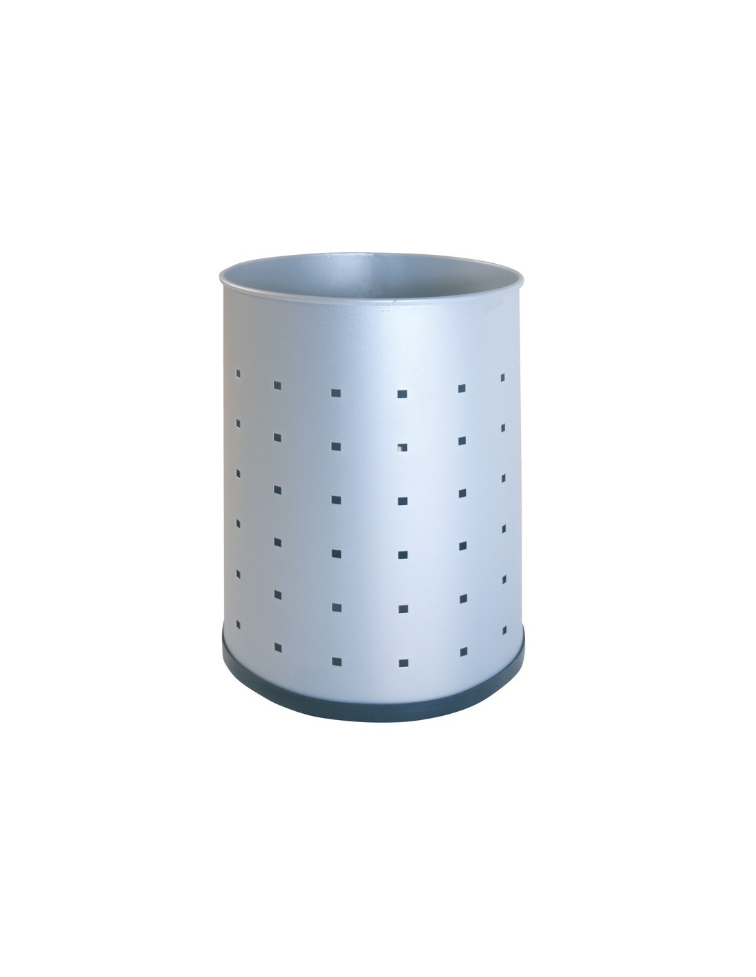 Papelera metálica perforada con forma circular. Capacidad: 12 litros. Medidas: Ø 21,5 x 31,5 cm.