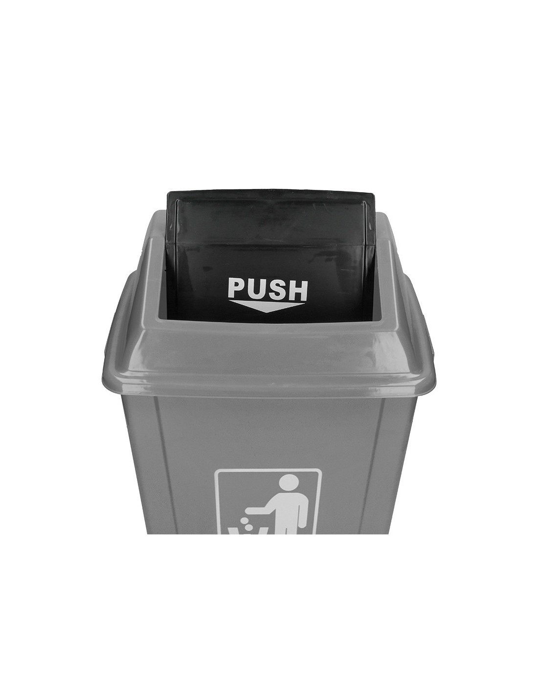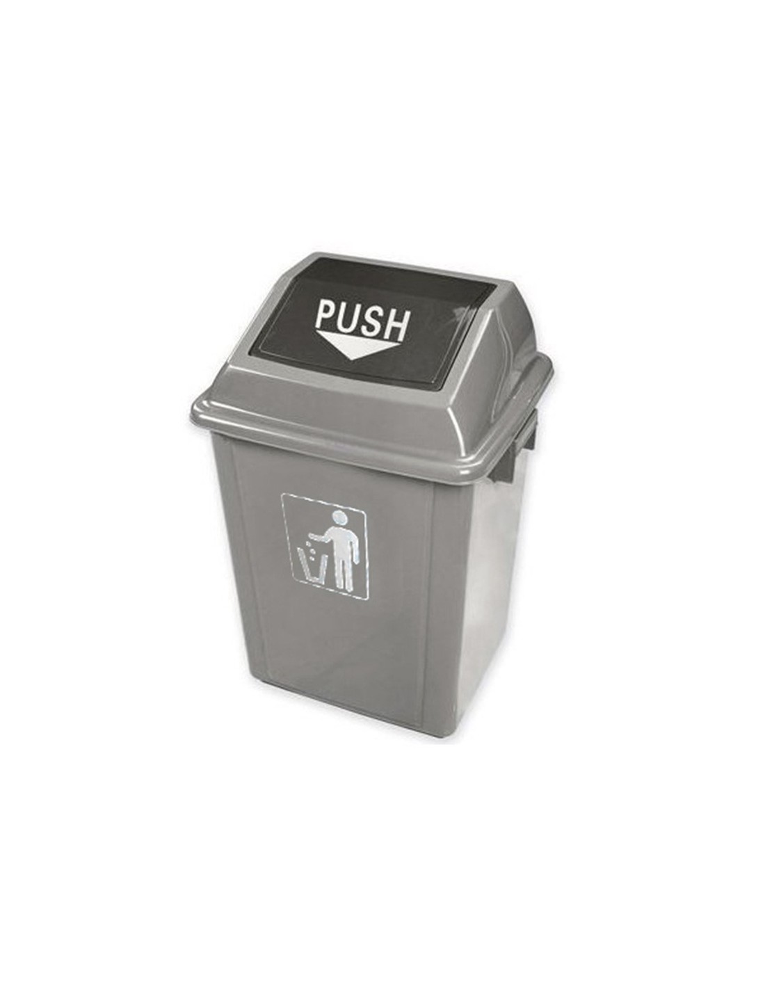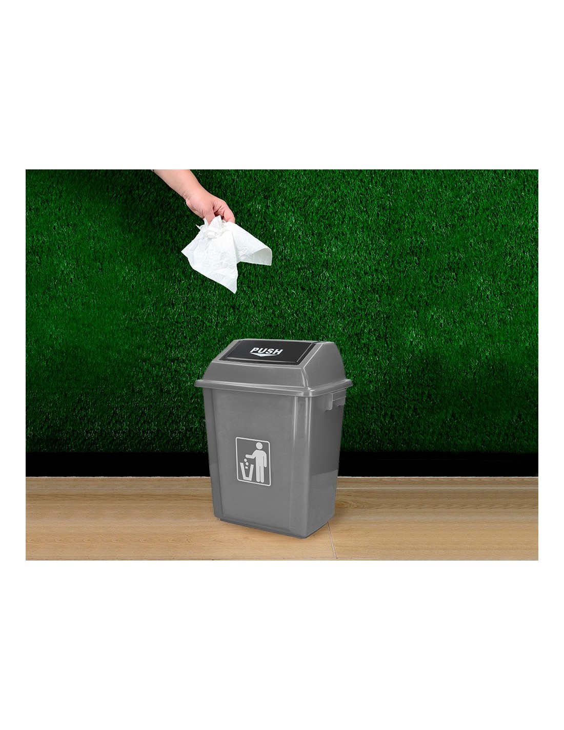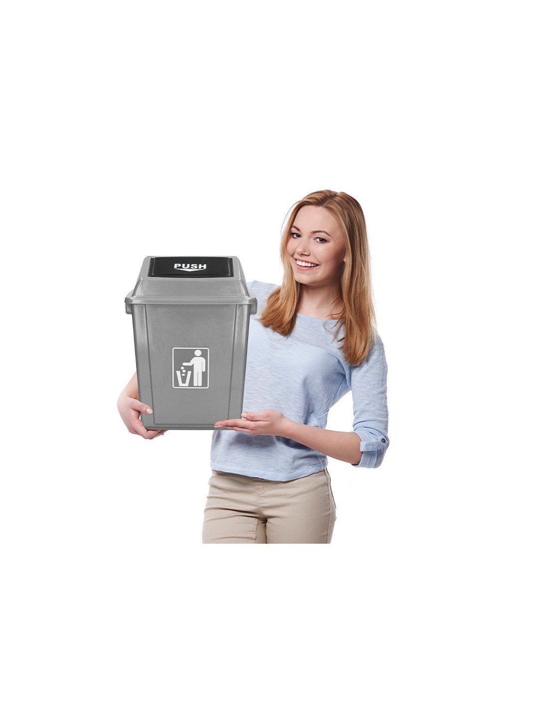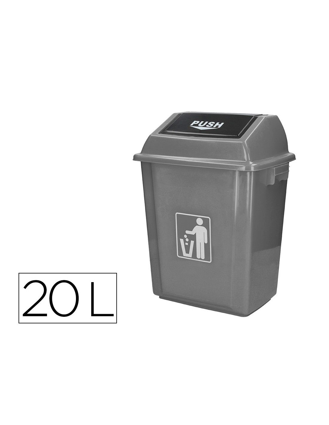 Con tapa balancín. Fácil apertura para retirar la bolsa. 2 asas para facilitar el transporte. Fabricada en plástico. Resistente. Color gris.