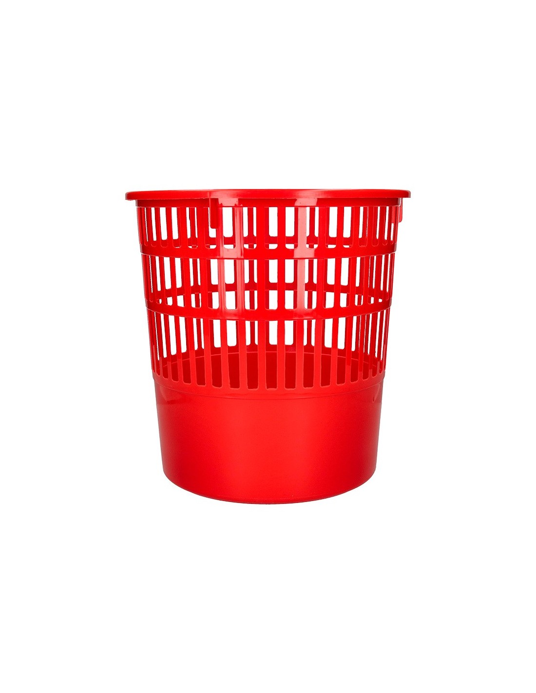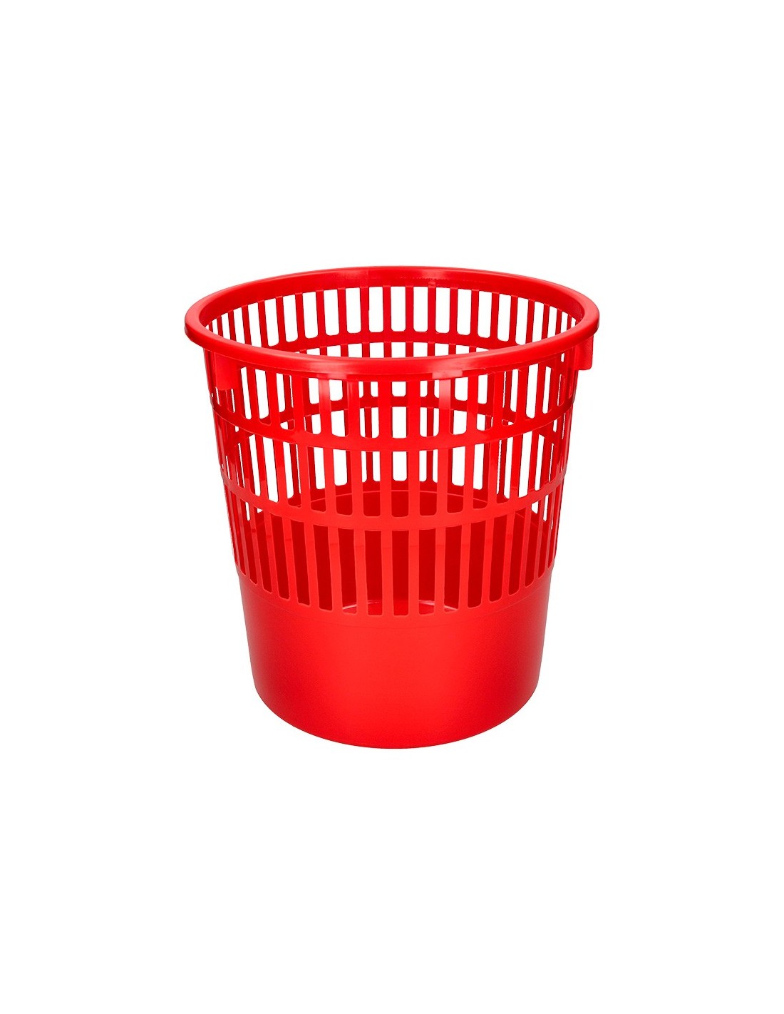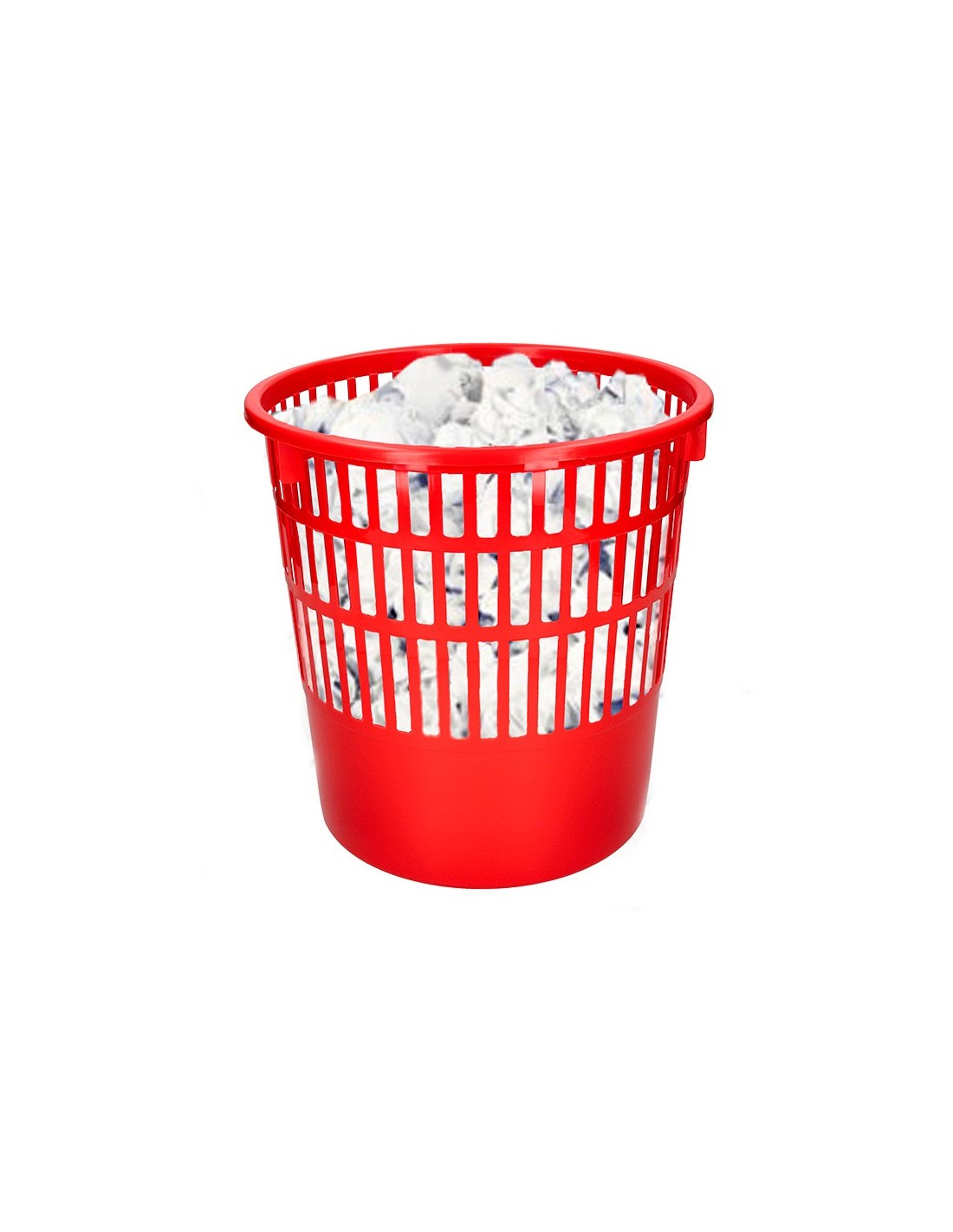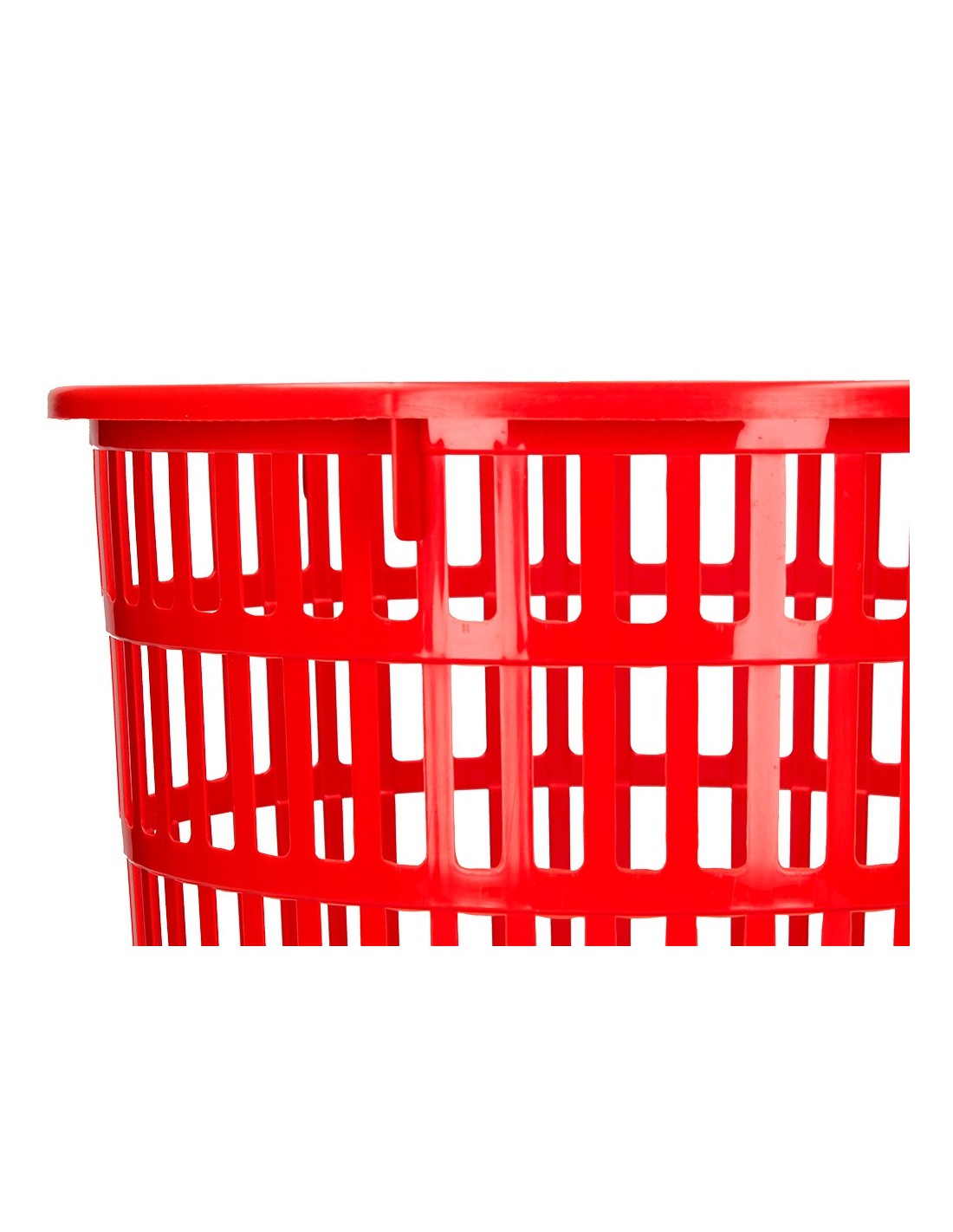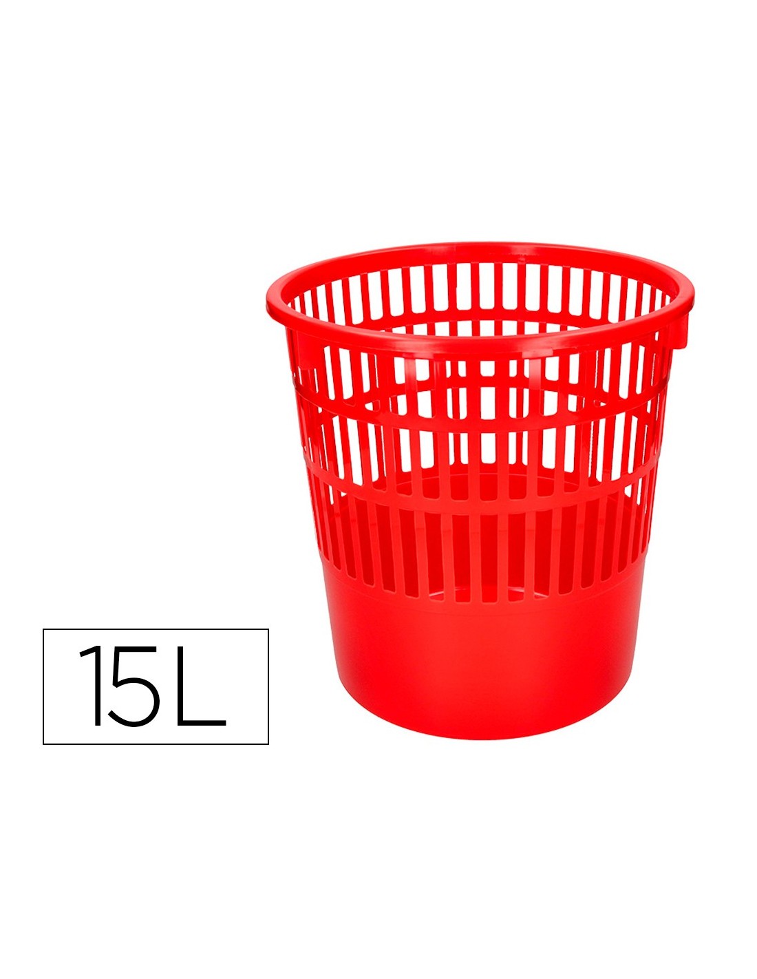 Papelera de rejilla muy resistente fabricada en poliestireno. Capacidad: 15 litros. Color rojo. Medidas: ø 28,5 x 29 cm.