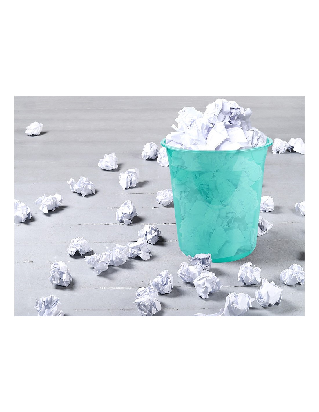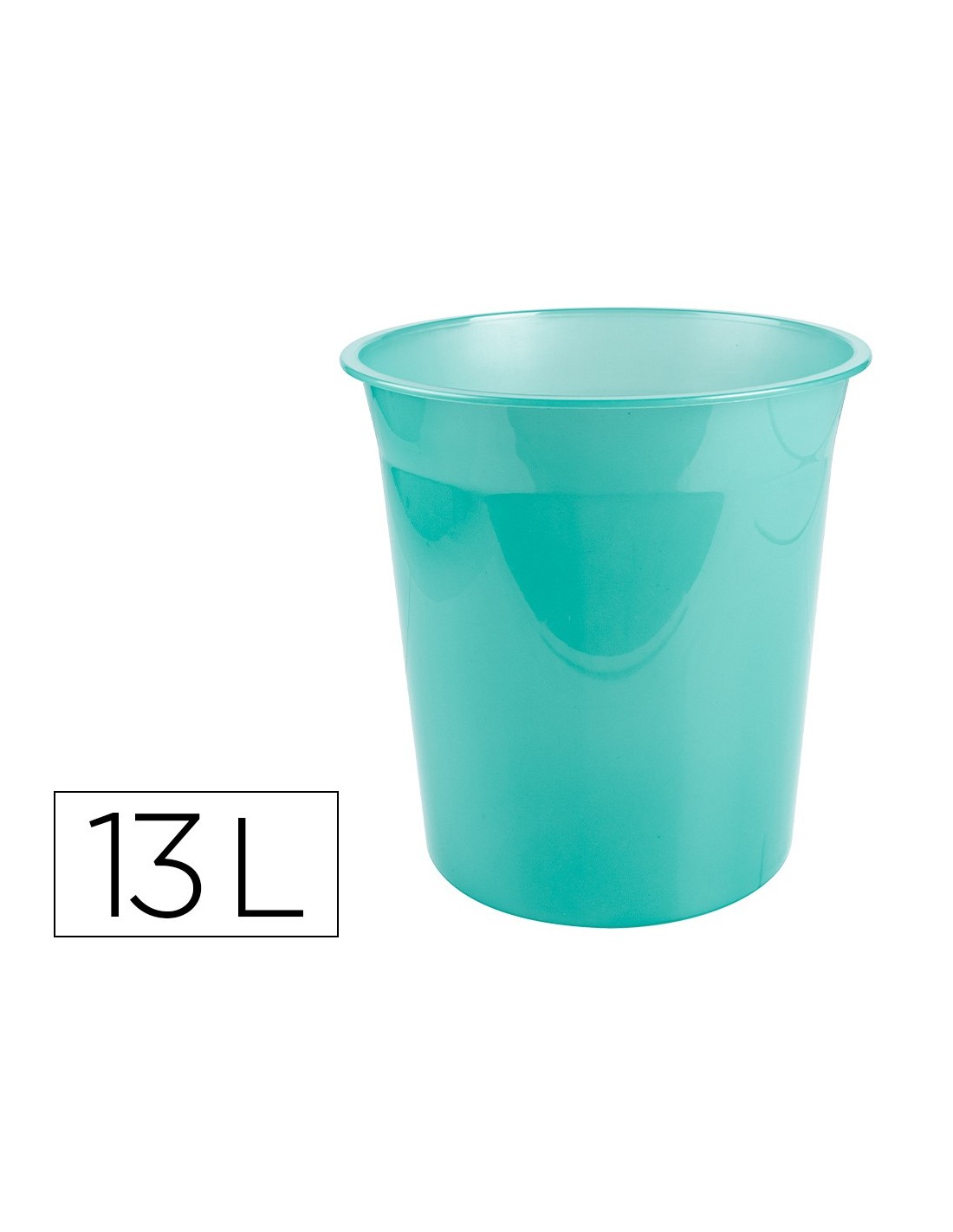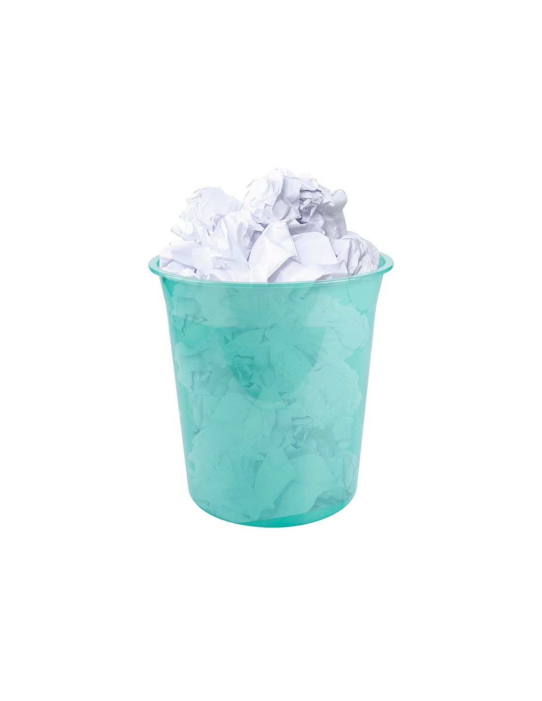 Papelera de plástico muy resistente. Capacidad: 13 litros. Medidas: ø 21x29 cm. Color verde menta translucido.