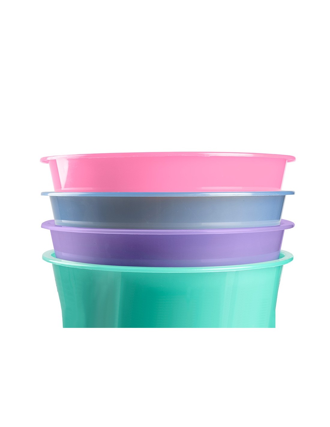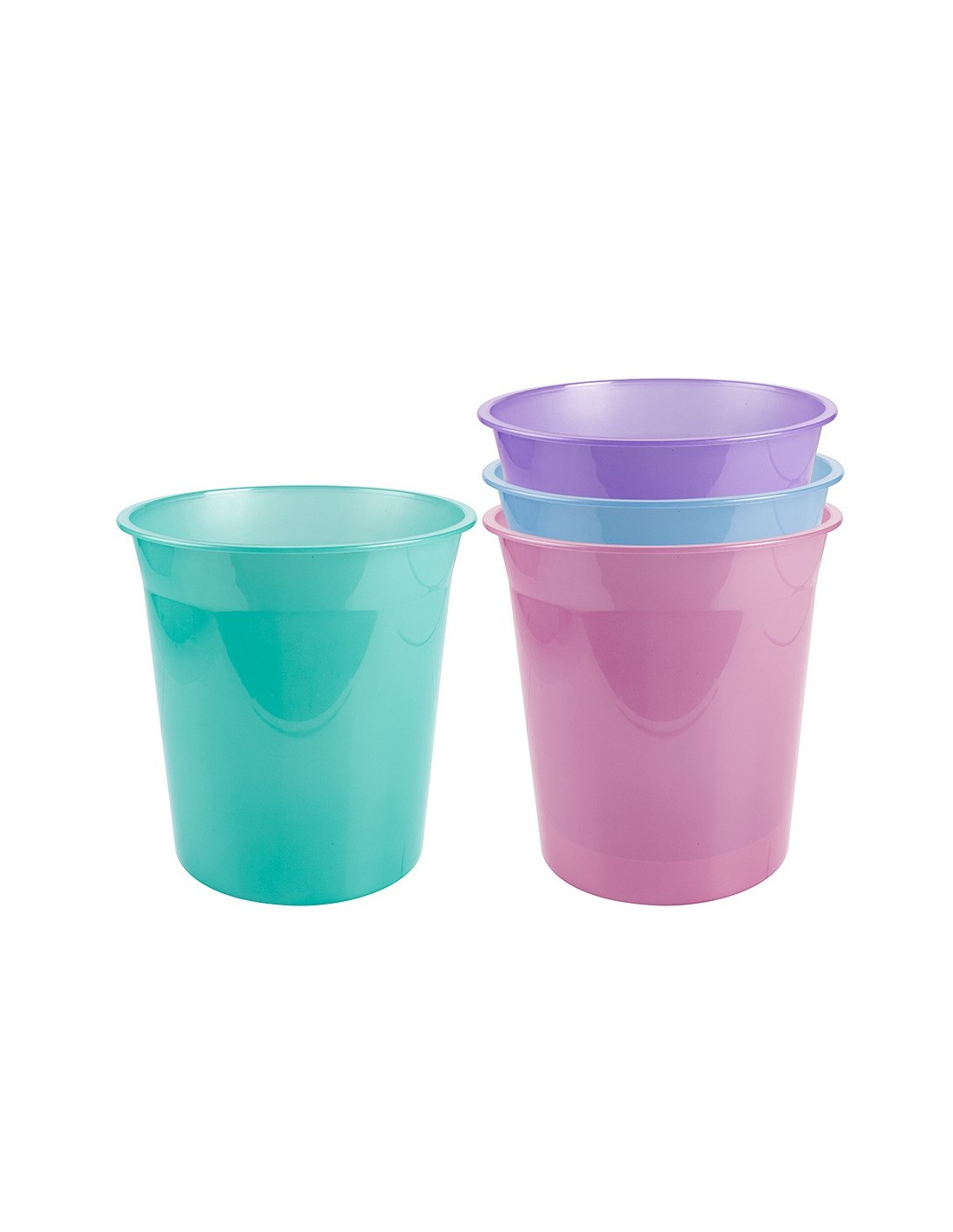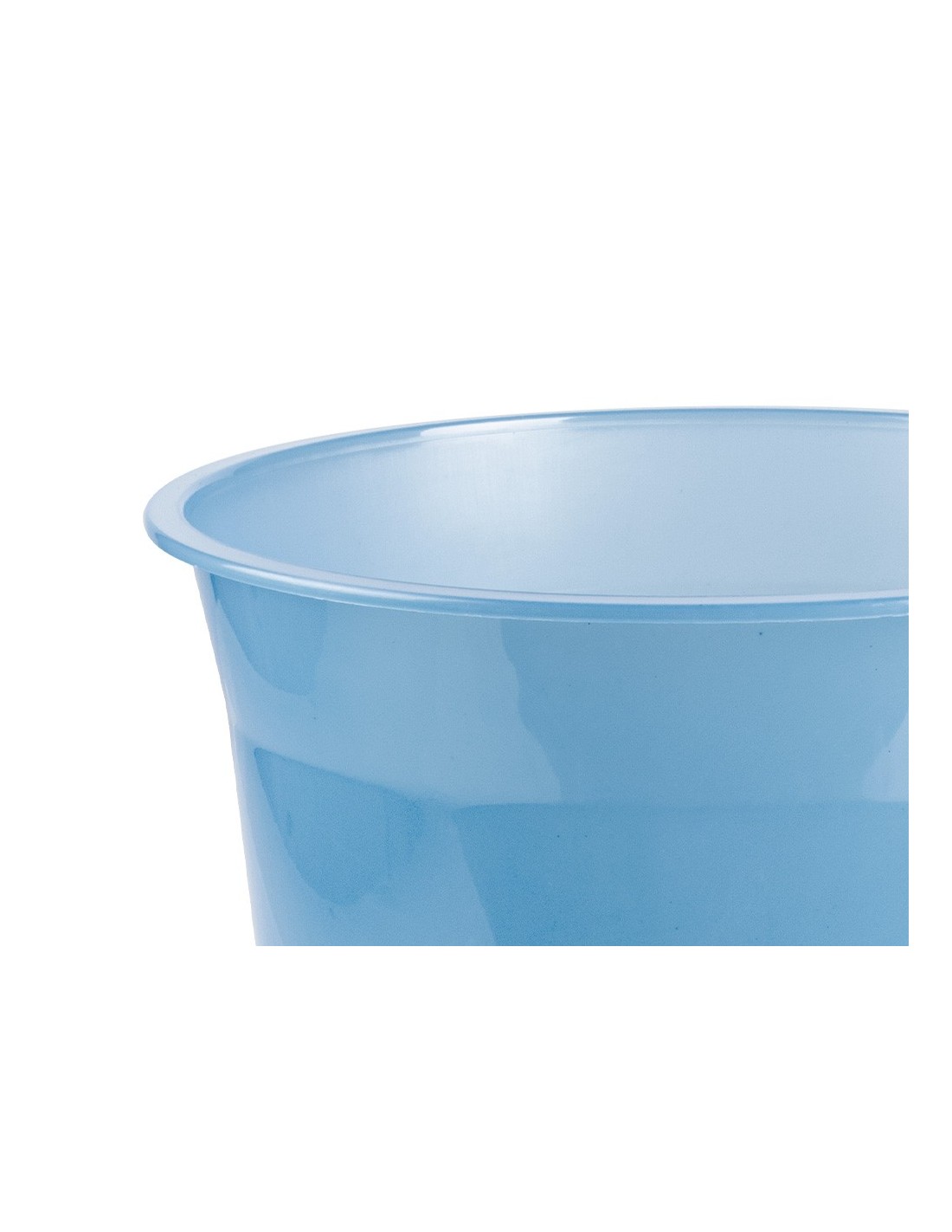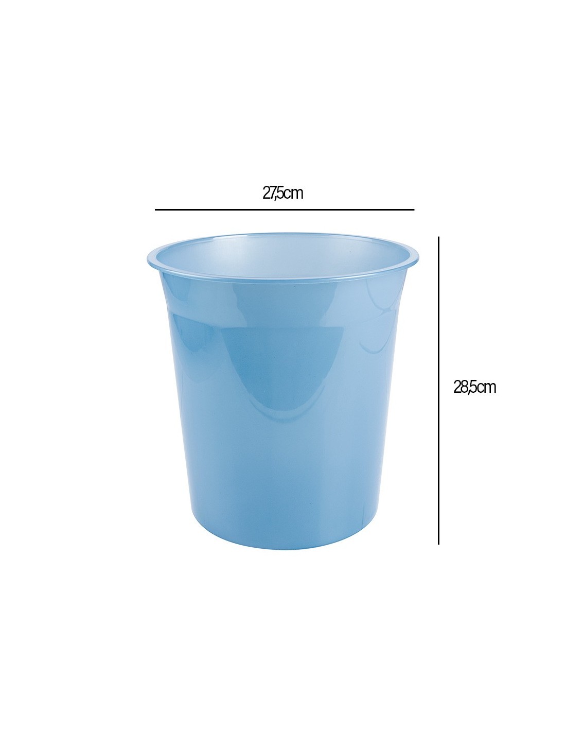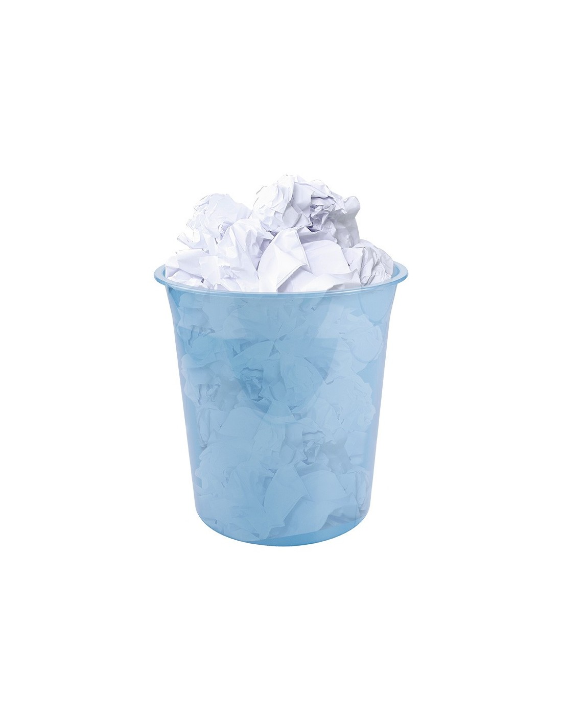 Papelera de plástico muy resistente. Capacidad: 13 litros. Medidas: ø 21x29 cm. Color celeste translucido.