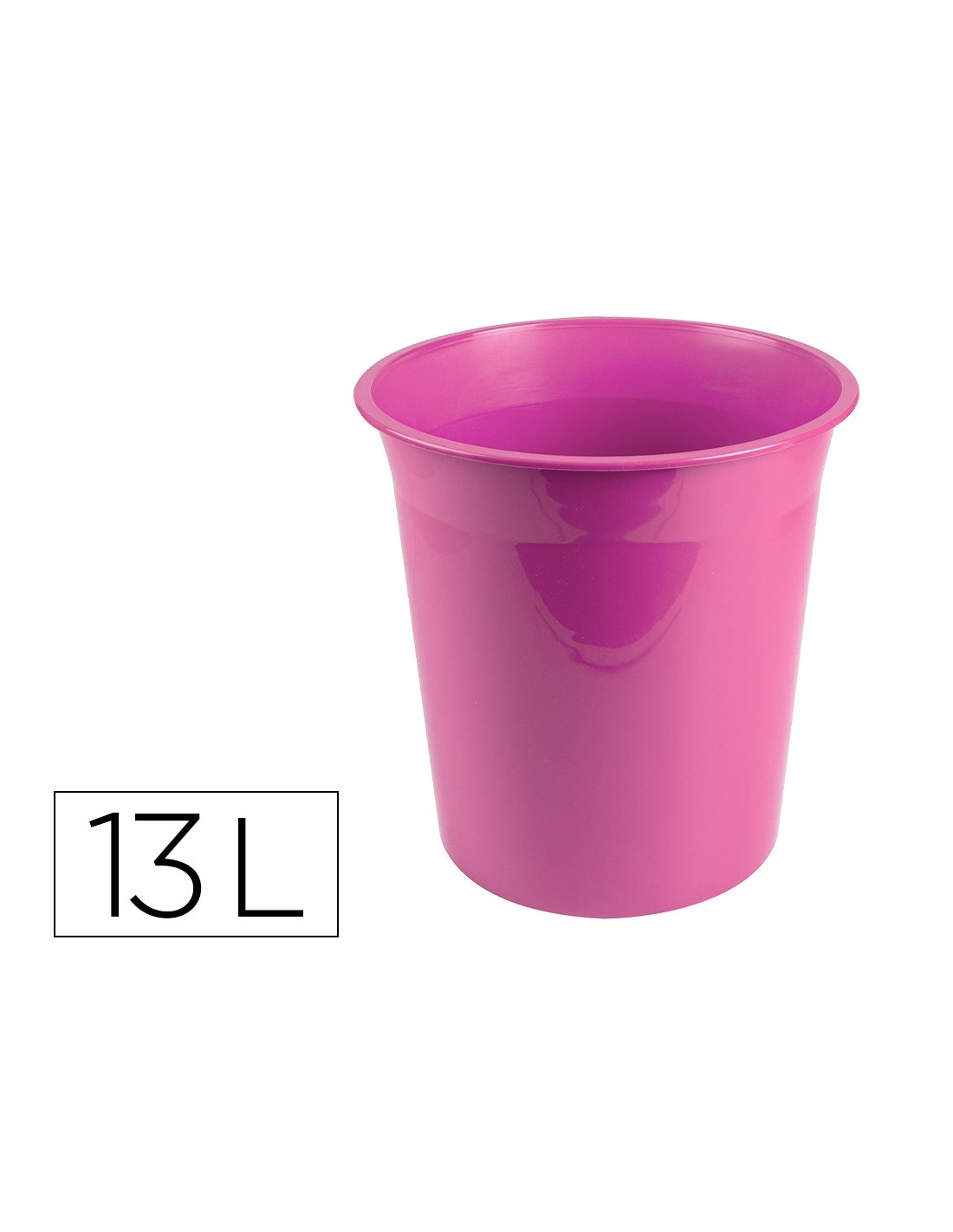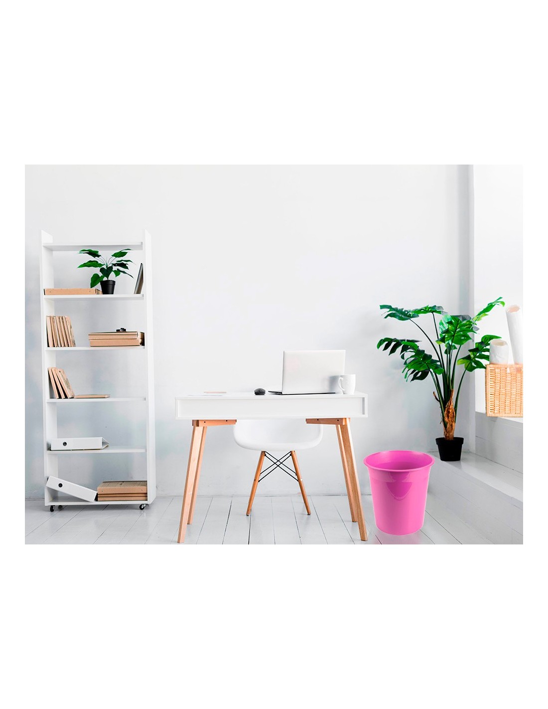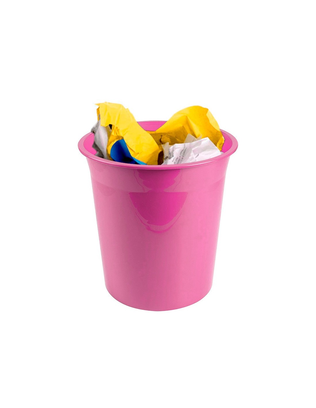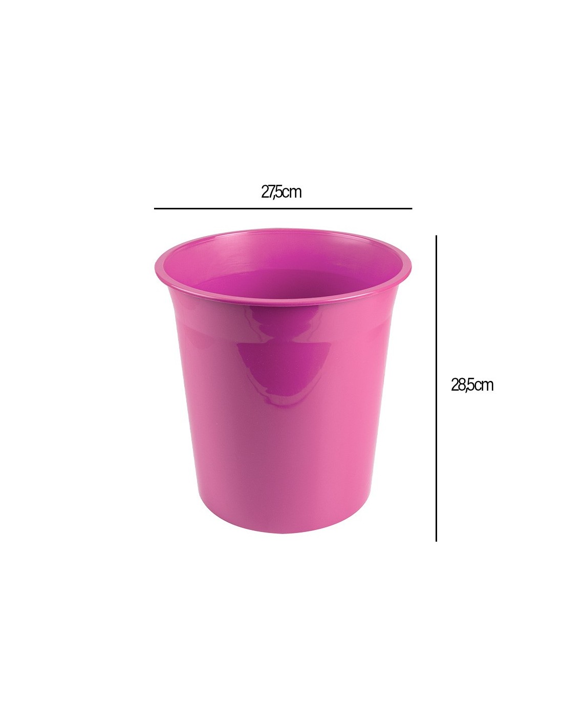 Papelera de plástico muy resistente. Capacidad: 13 litros. Medidas: ø 21x29 cm. Color rosa opaco.