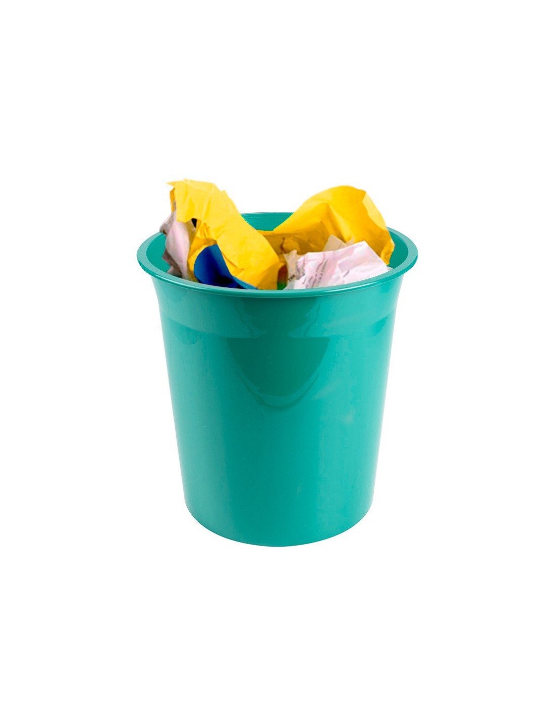 Papelera de plástico muy resistente. Capacidad: 13 litros. Medidas: ø 21x29 cm. Color verde menta opaco.