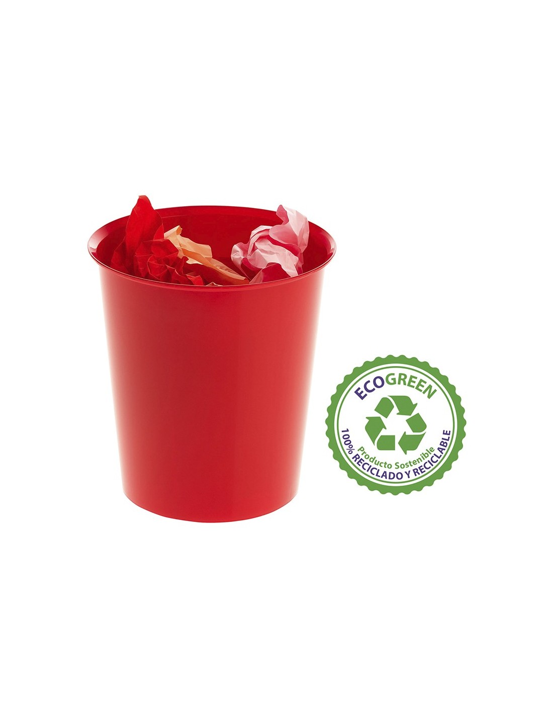 Papelera sostenible Archivo 2000 Ecogreen encajable de 18 litros de capacidad. Fabricada en polipropileno 100% reciclado y reciclable. Material de gran calidad, muy resistente a golpes y rayaduras. No astillan en caso de rotura. Posibilidad de incorporar un aro sujetabolsas (Ref. 2001ARO). Color rojo. Medidas exteriores: 290 x 310 mm. Fabricado en España.