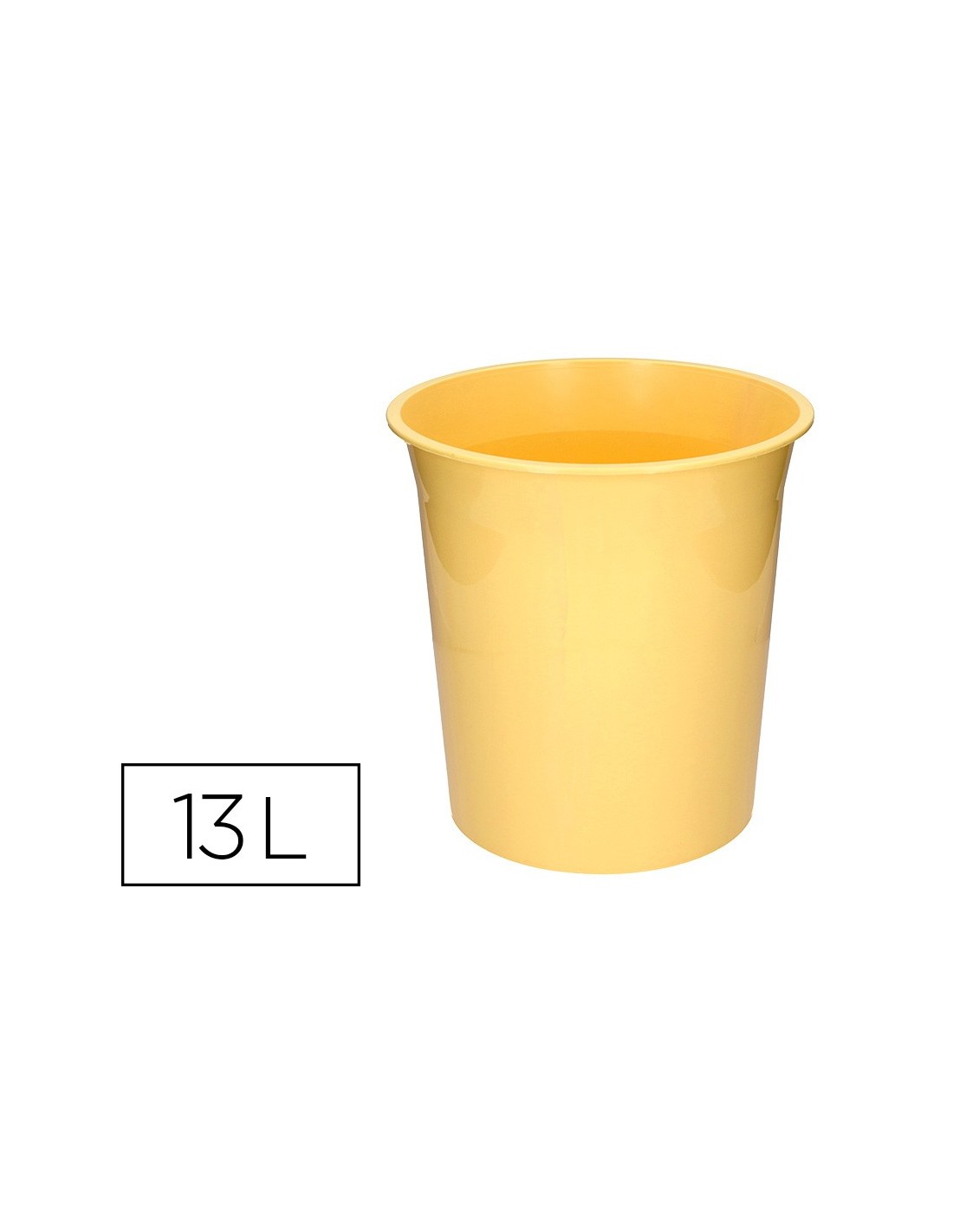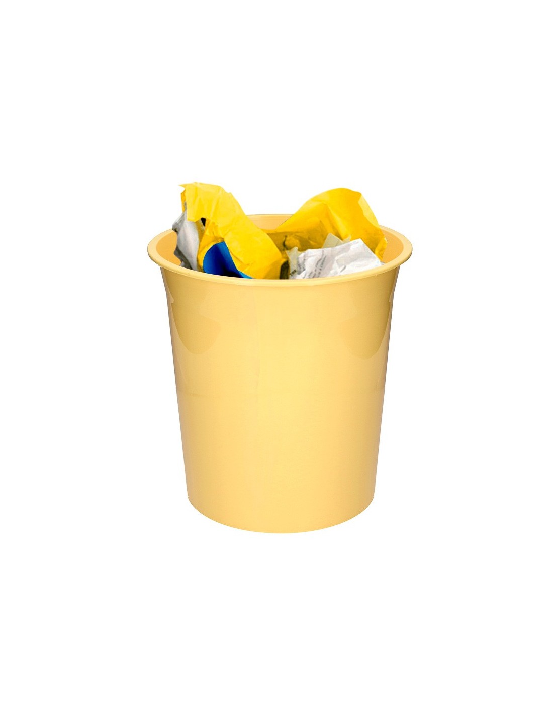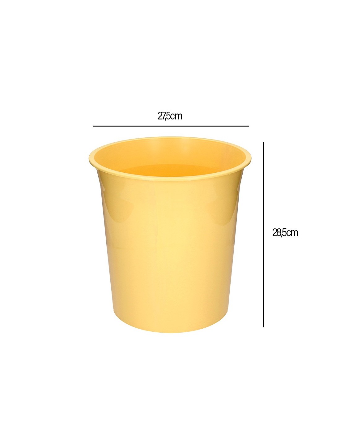 Papelera de plástico muy resistente. Capacidad: 13 litros. Medidas: Ø21 x 29 cm. Color amarillo pastel.