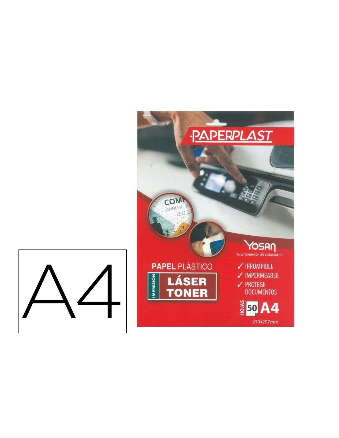 PAPEL PLASTICO YOSAN PAPERPLAST POLIESTER BLANCO BRILLO DIN A4 200 MC IMPRIMIBLE PAQUETE DE 50 HOJAS