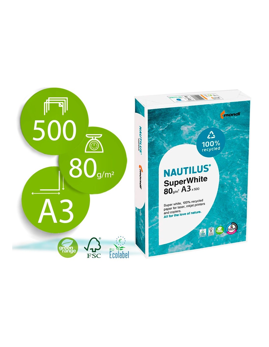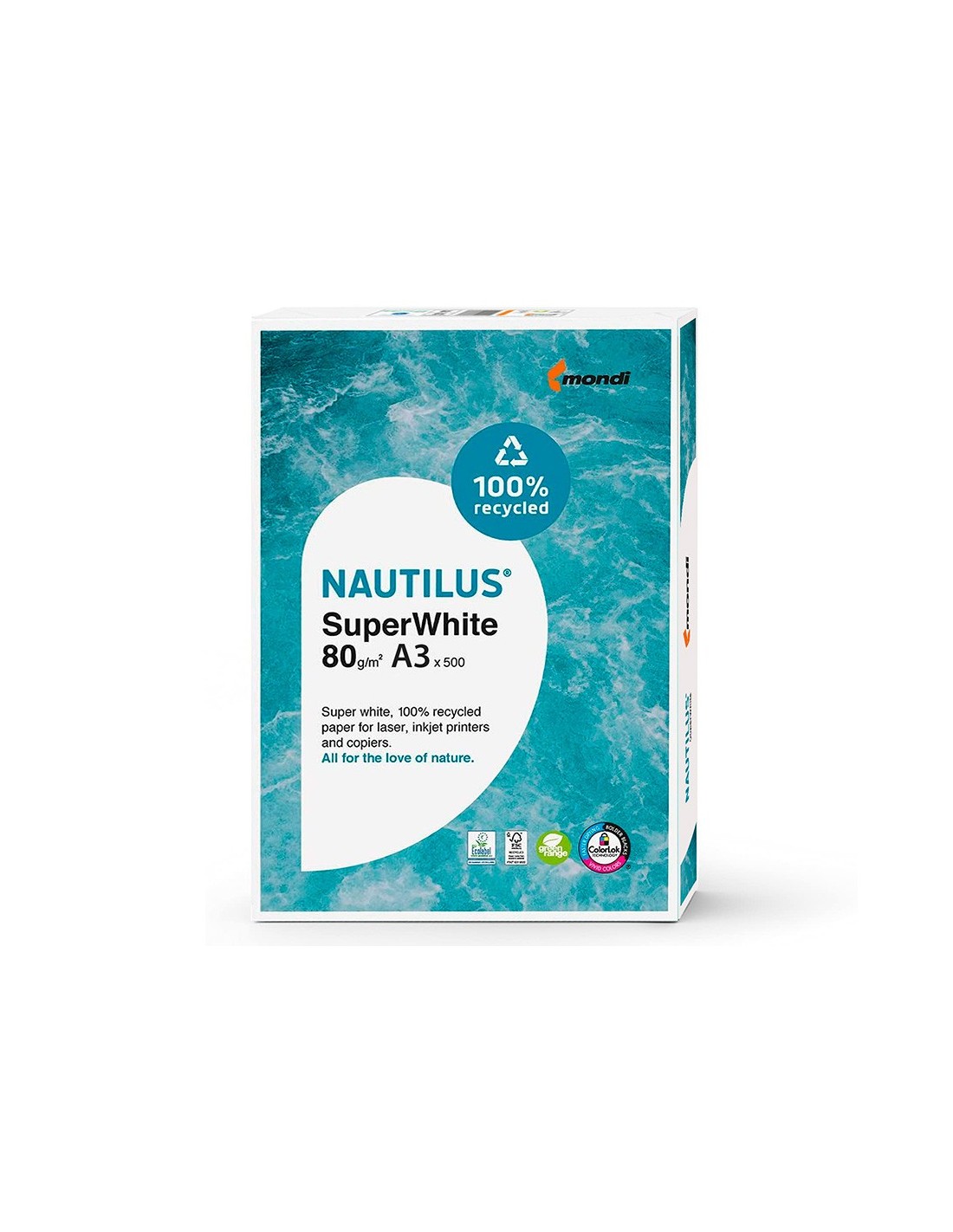 PAQ. PAPEL NAUTILUS SUPERWHITE 100% RECICLADO A3 80GR 500 H.