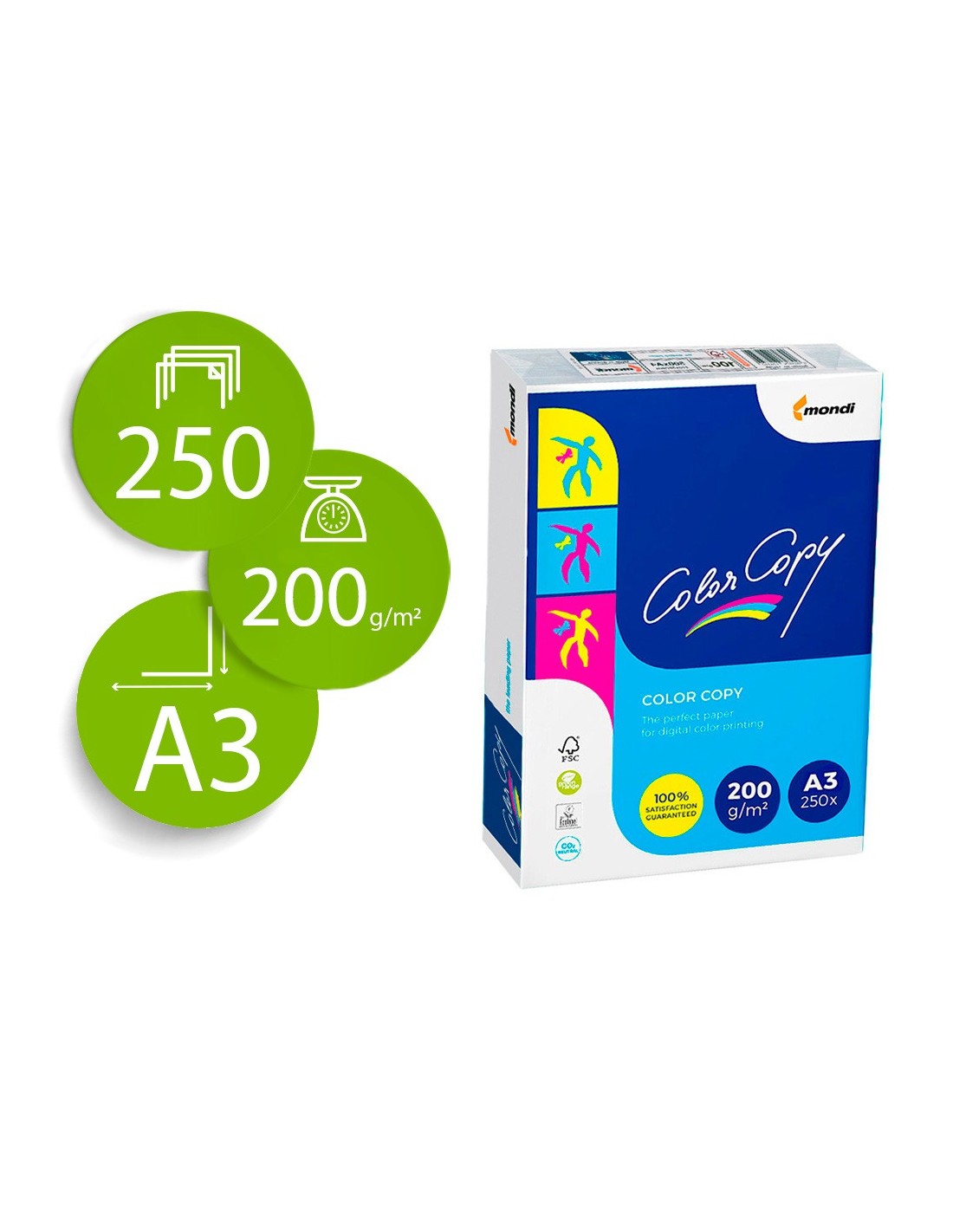 PAPEL FOTOCOP.COLOR COPYDIN A3 200 GRAMOS PAQUETE 250 H.