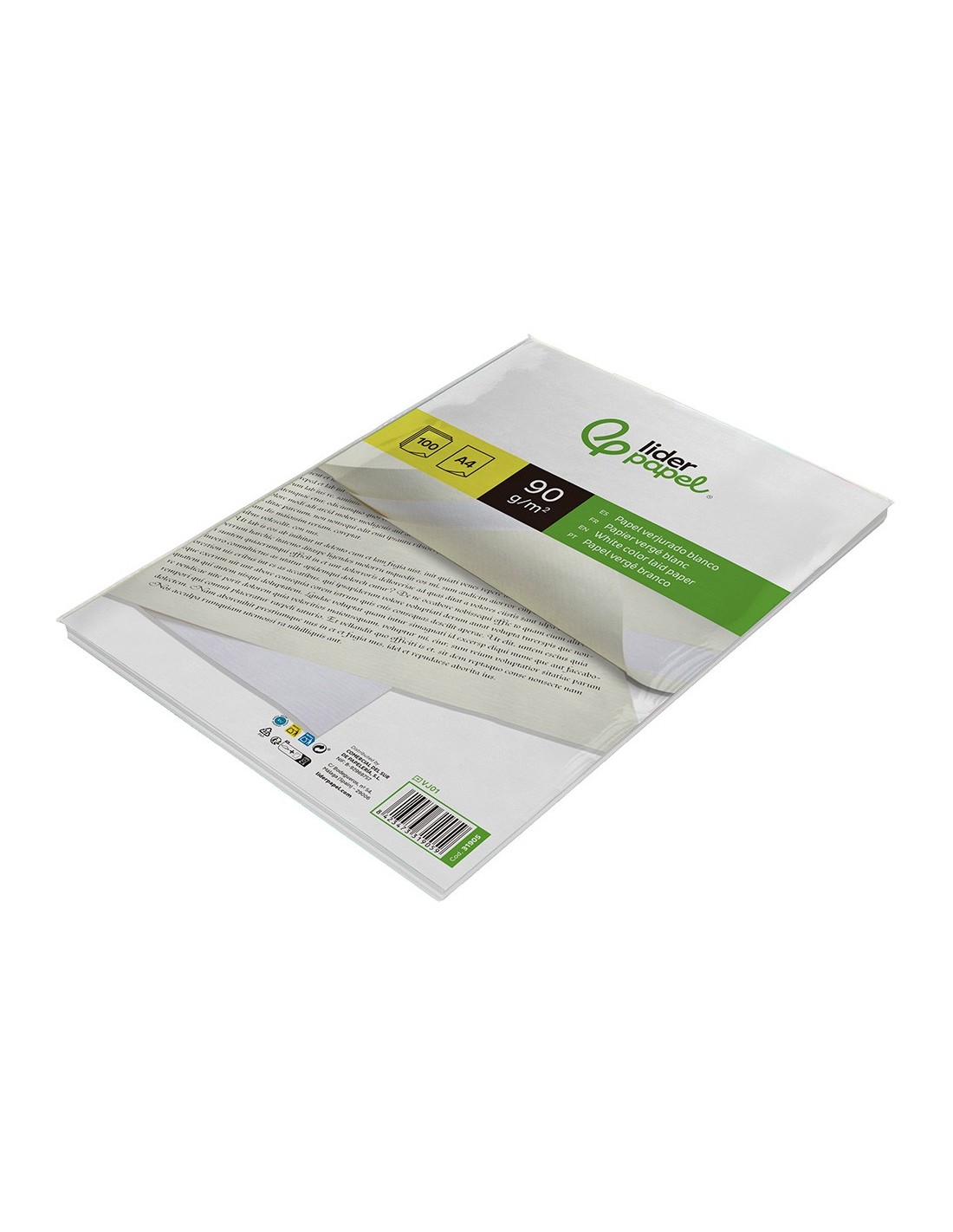 PAPEL VERJURADO BLANCO DIN A4 90 GRAMOS PAQUETE 100 H.