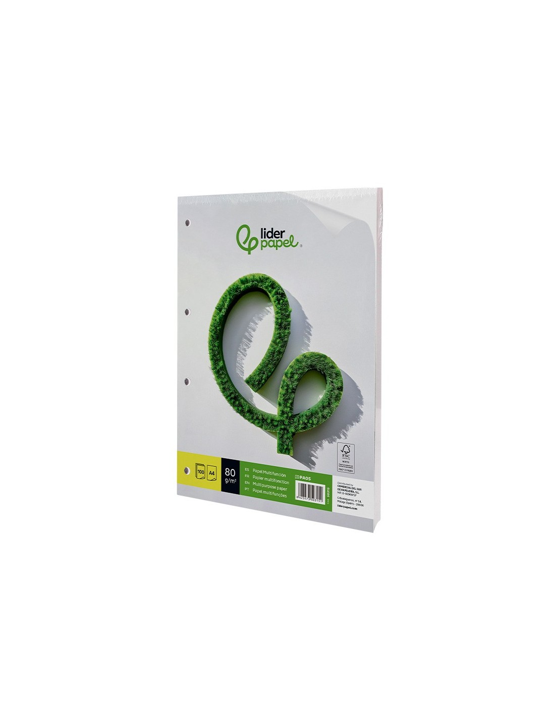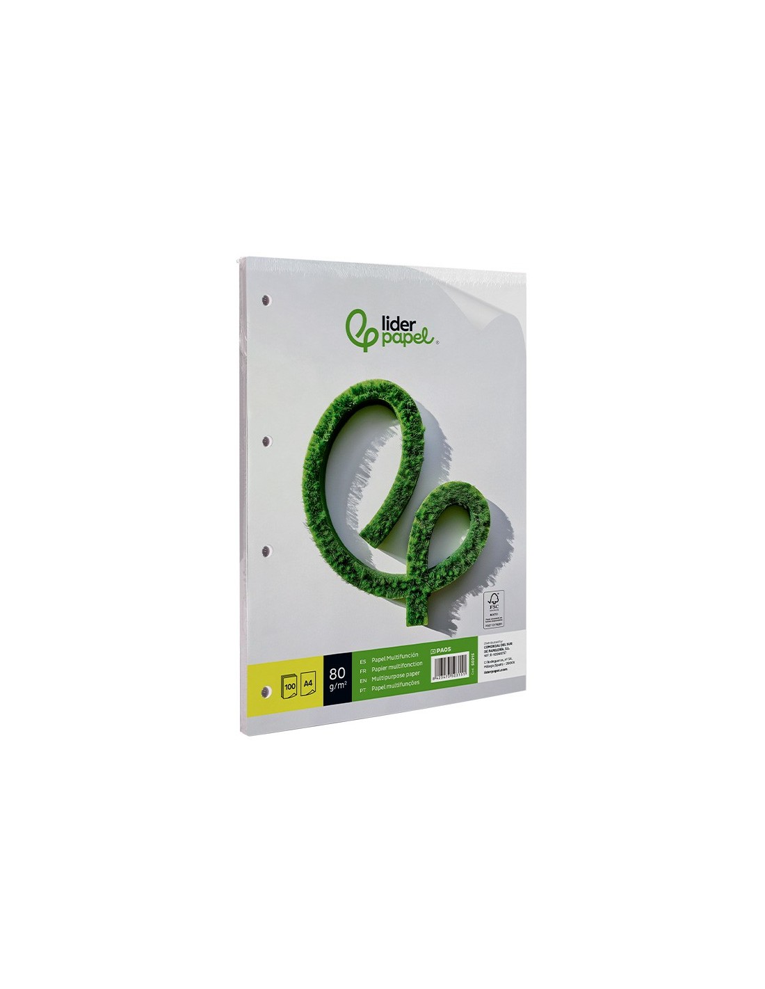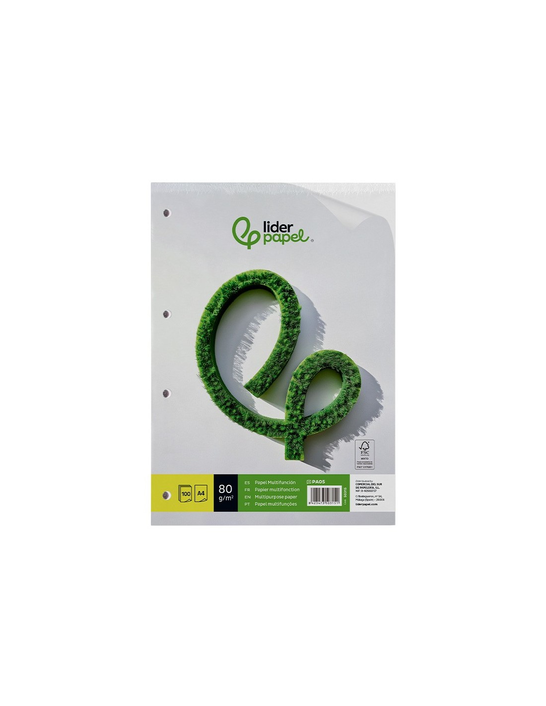 Ideal para escritura, máquinas fotocopiadoras y multicopista a doble cara, por su blancura extra y opacidad. Liso. 4 taladros. Formato DIN A4. El paquete de 100 hojas.