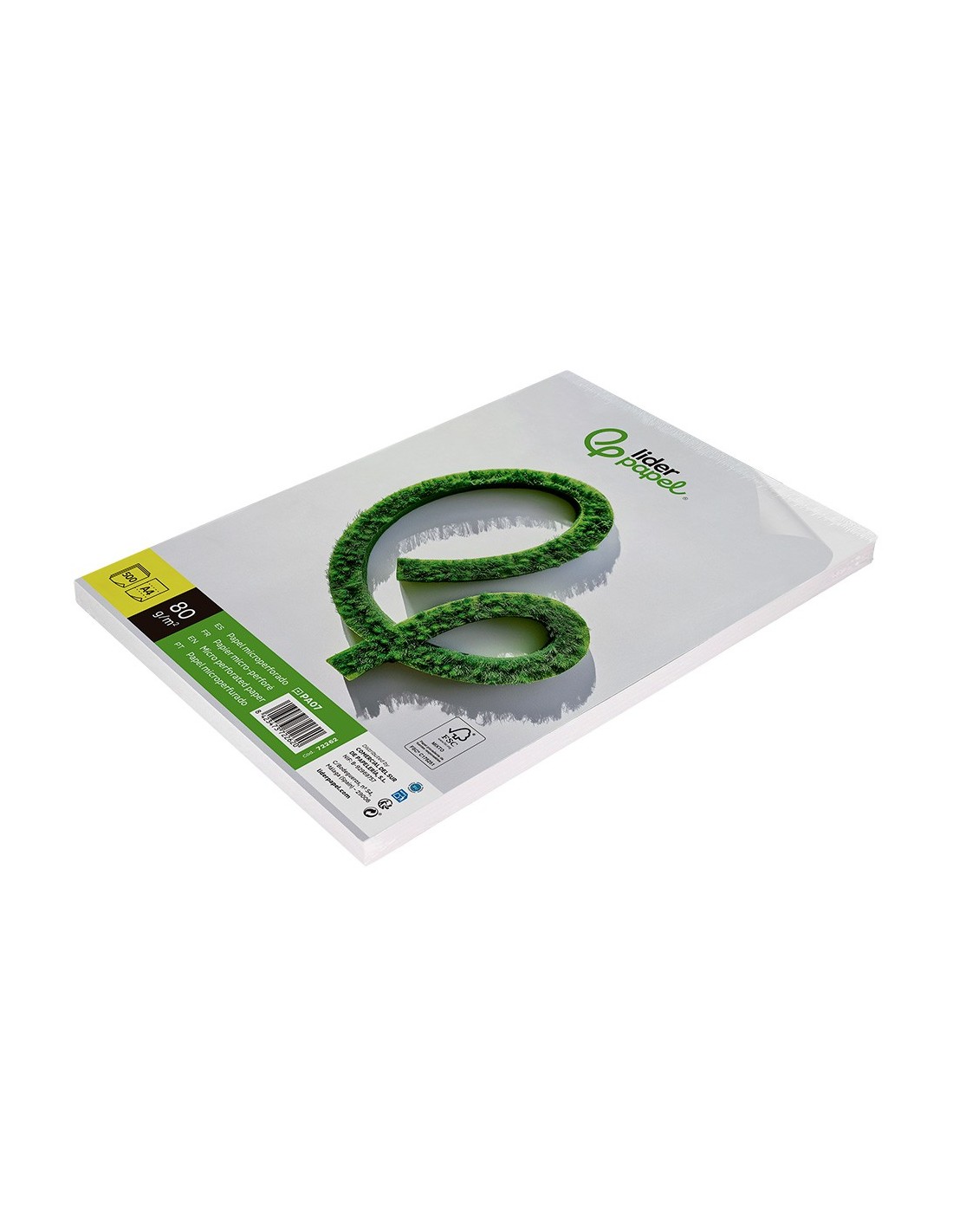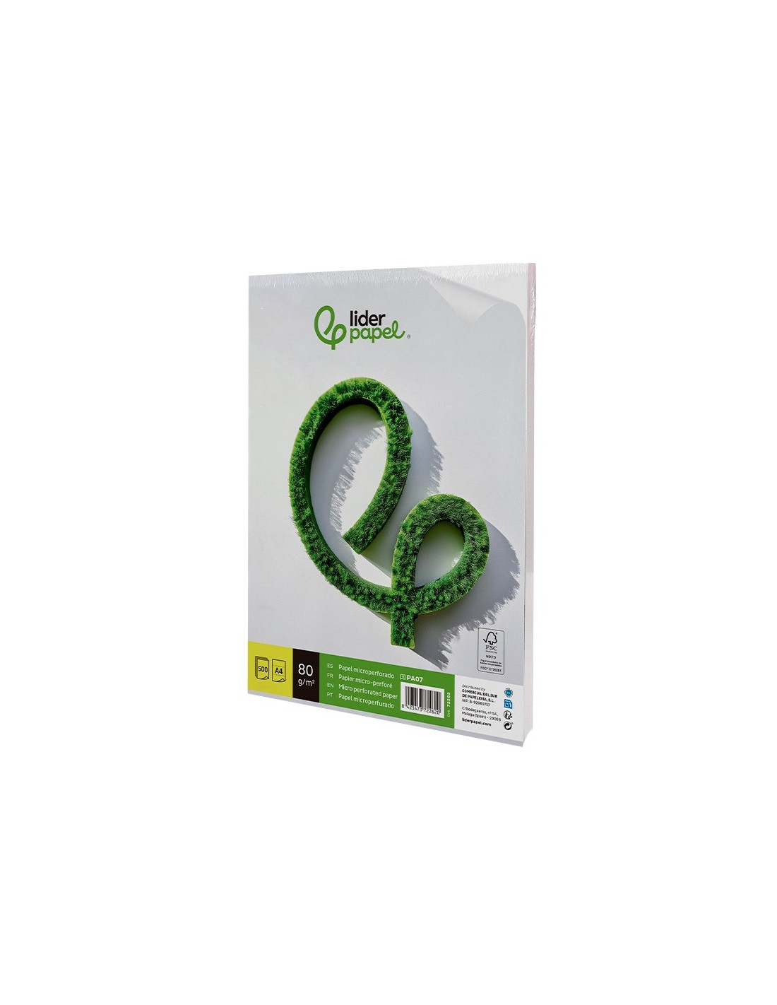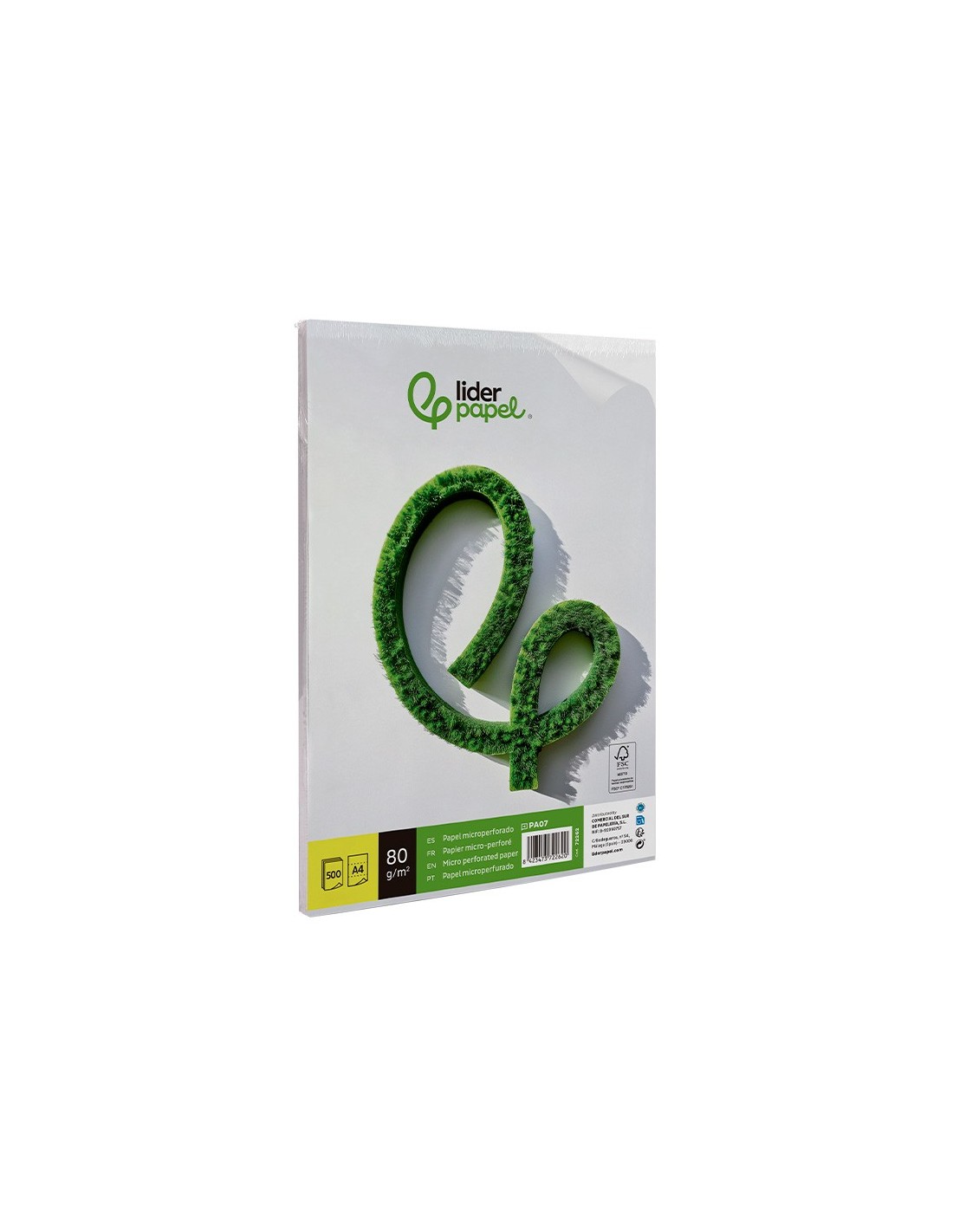 Papel fotocopiadora microperforado en 3 partes iguales. Color blanco. 80 g/m². Formato DIN A4. Liso. El paquete de 500 hojas.