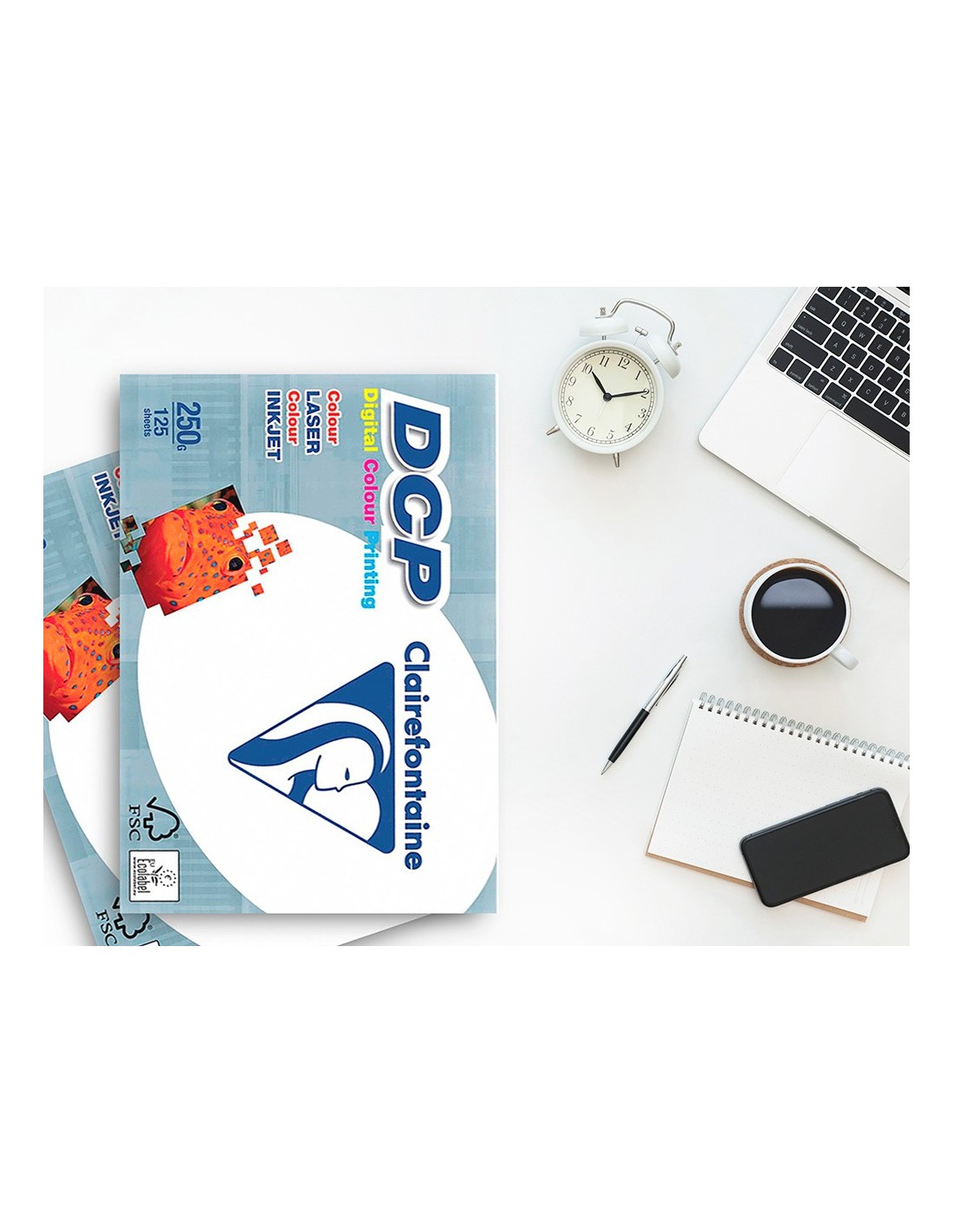 Intenso y luminoso, los colores impresos sobre DCP se hacen vivos. La blancura pura del papel DCP respeta los colores más sutiles y los contrastes más refinados. Su textura uniforme permite una impresión perfecta y su lisura asegura una imagen aguda y brillante. Su específico tratamiento no abrasivo protege las impresoras del desgaste prematuro. Este papel también da resultados excelentes con impresoras en color de chorro de tinta (ink-jet).