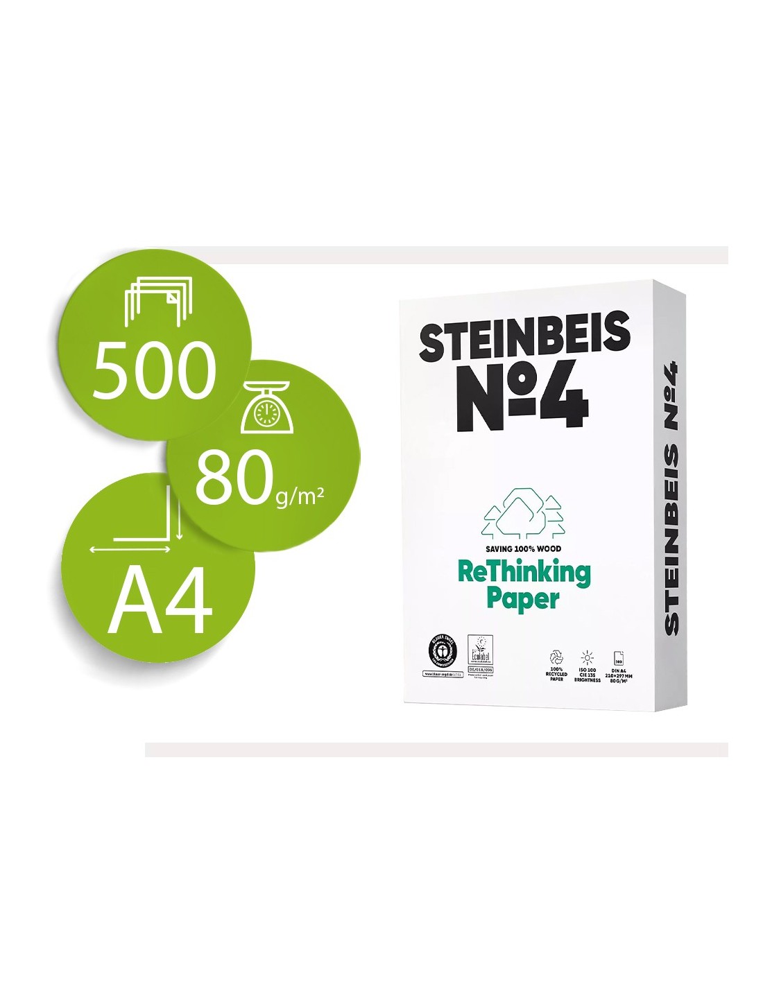 PAPEL FOTOCOPIADORA STEINBEIS N.4 100% RECICLADO A4 80 GR PQ.DE 500H.