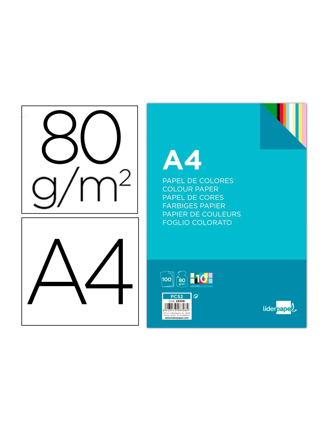 Idóneo para impresoras ink-jet, láser y fotocopiadoras. Colores surtidos aleatorios. 10 hojas x 10 colores. El paquete de 100 hojas.