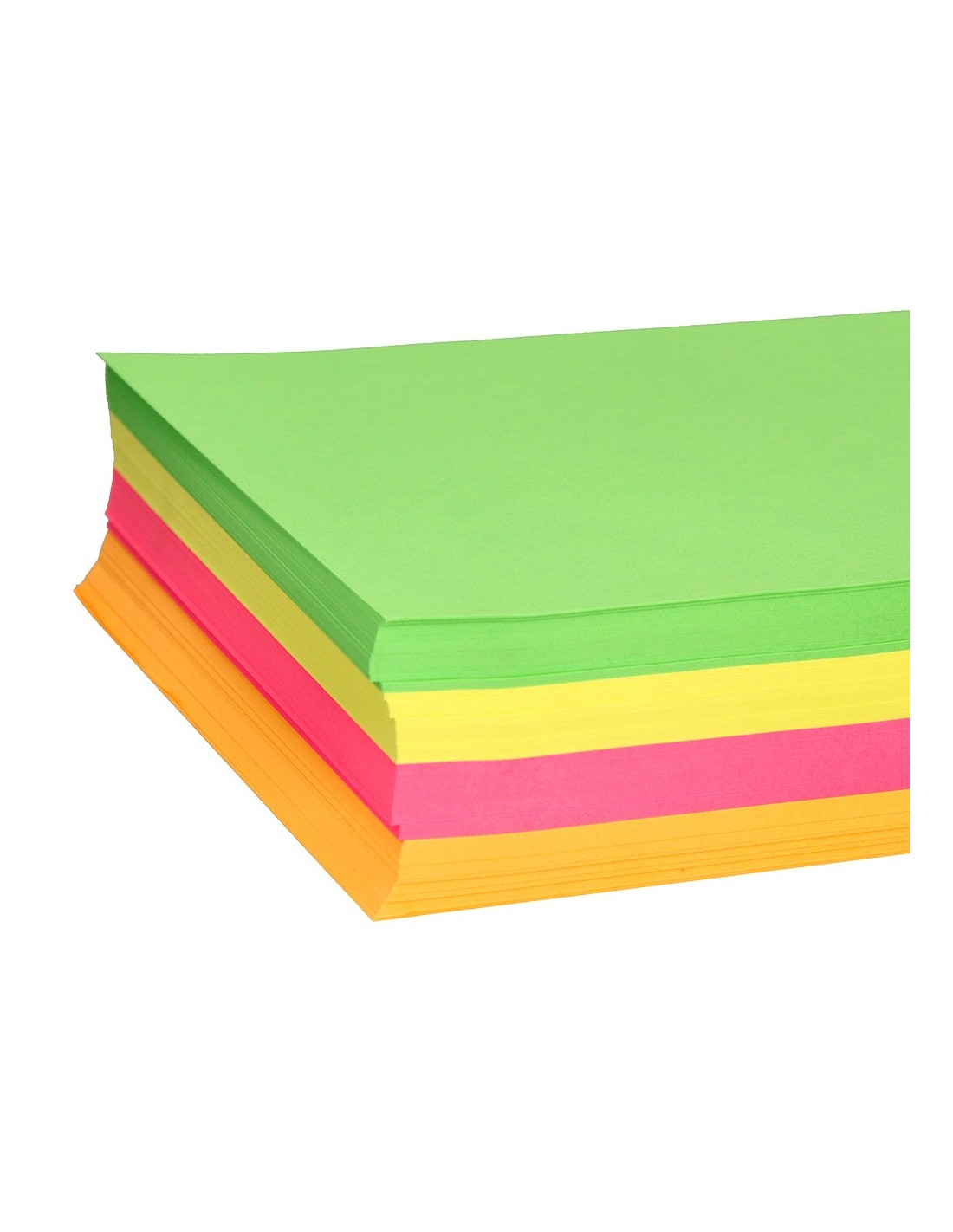 Papel de colores neón. Idóneo para impresoras ink-jet, láser y fotocopiadoras. 4 colores surtidos: amarillo neón, naranja neón, rosa neón y verde neón. Formato DIN A4.
