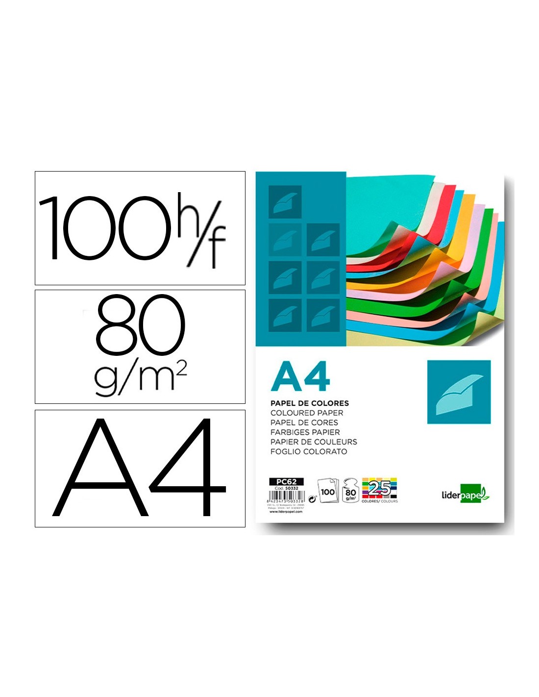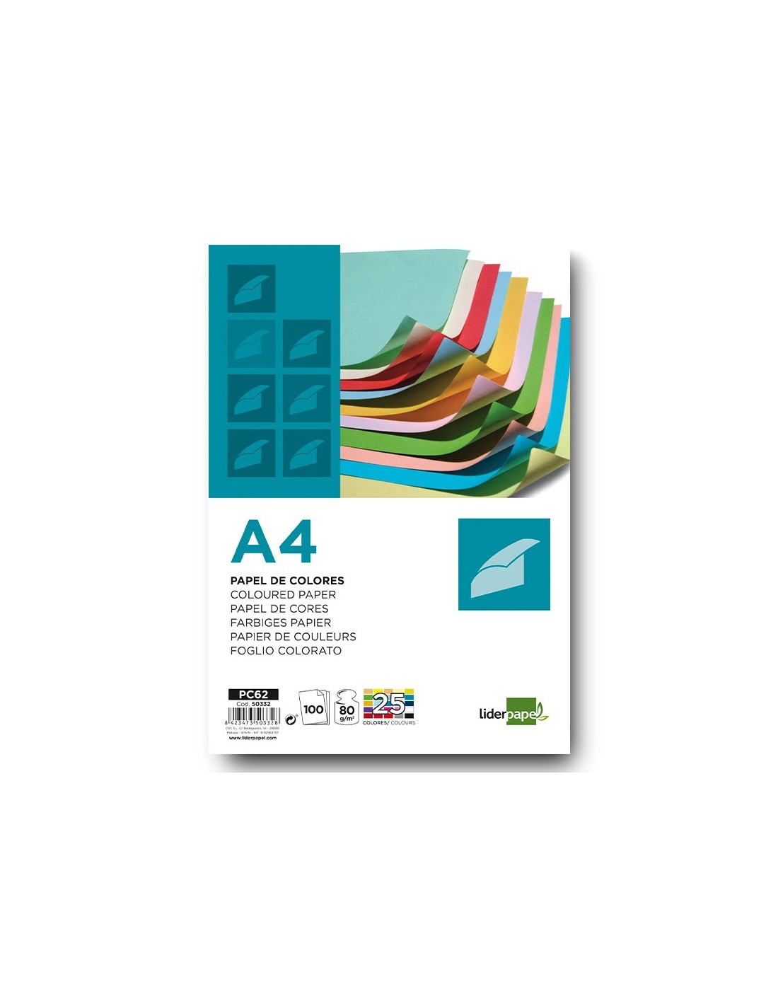 PAPEL COLOR DIN A4 80 GR PAQUETE 100 H.25 COL.SURT.