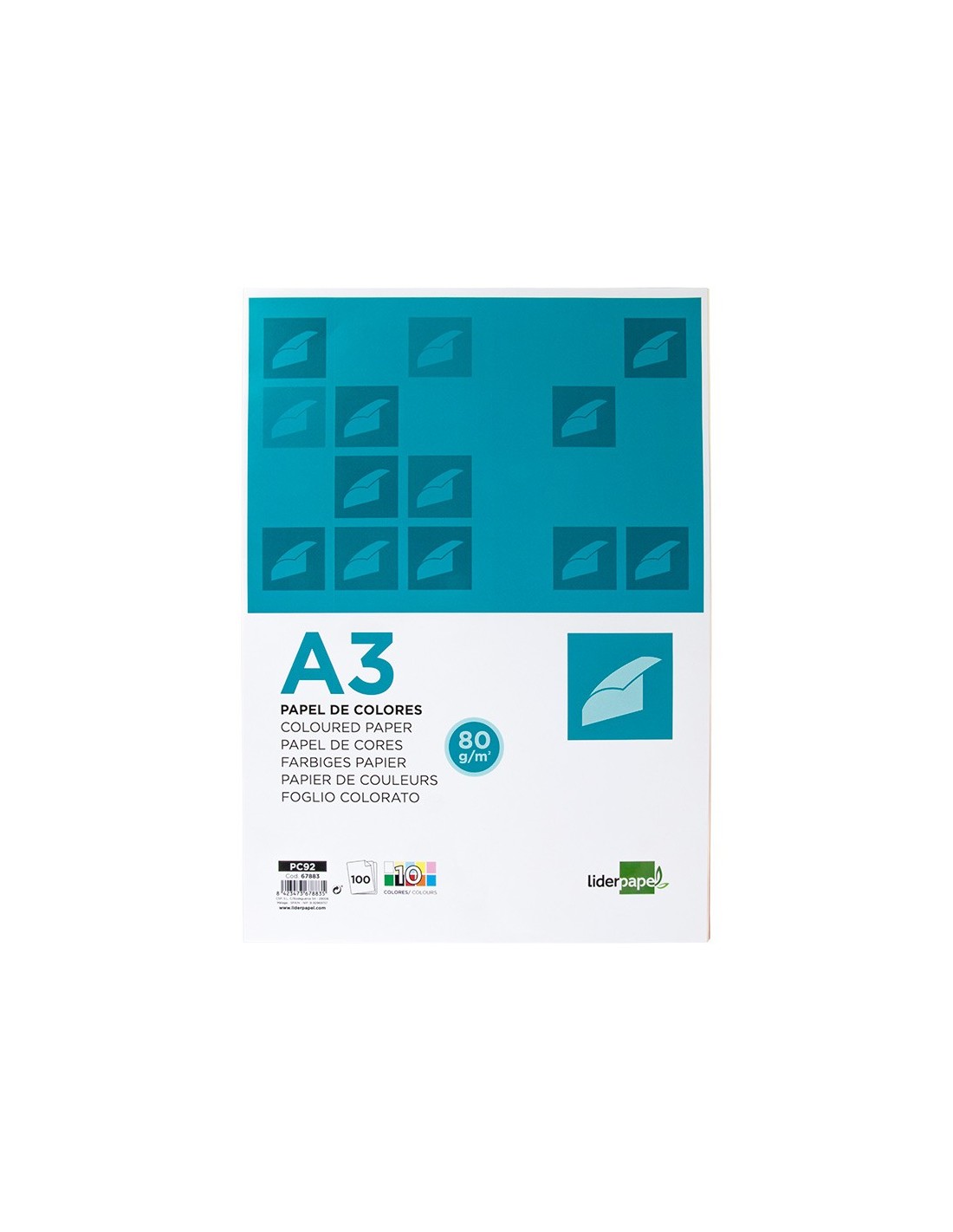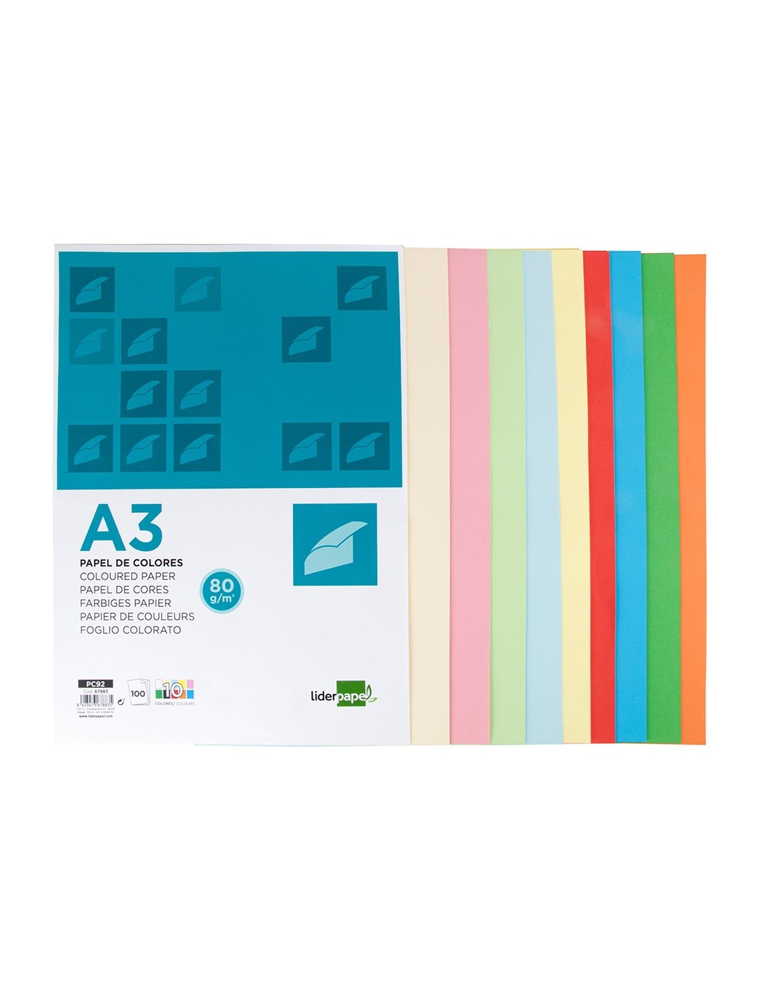 PAPEL LIDERPAPEL A3 80GR/M2 10 COL.SURT.PAQUETE 100 HOJAS
