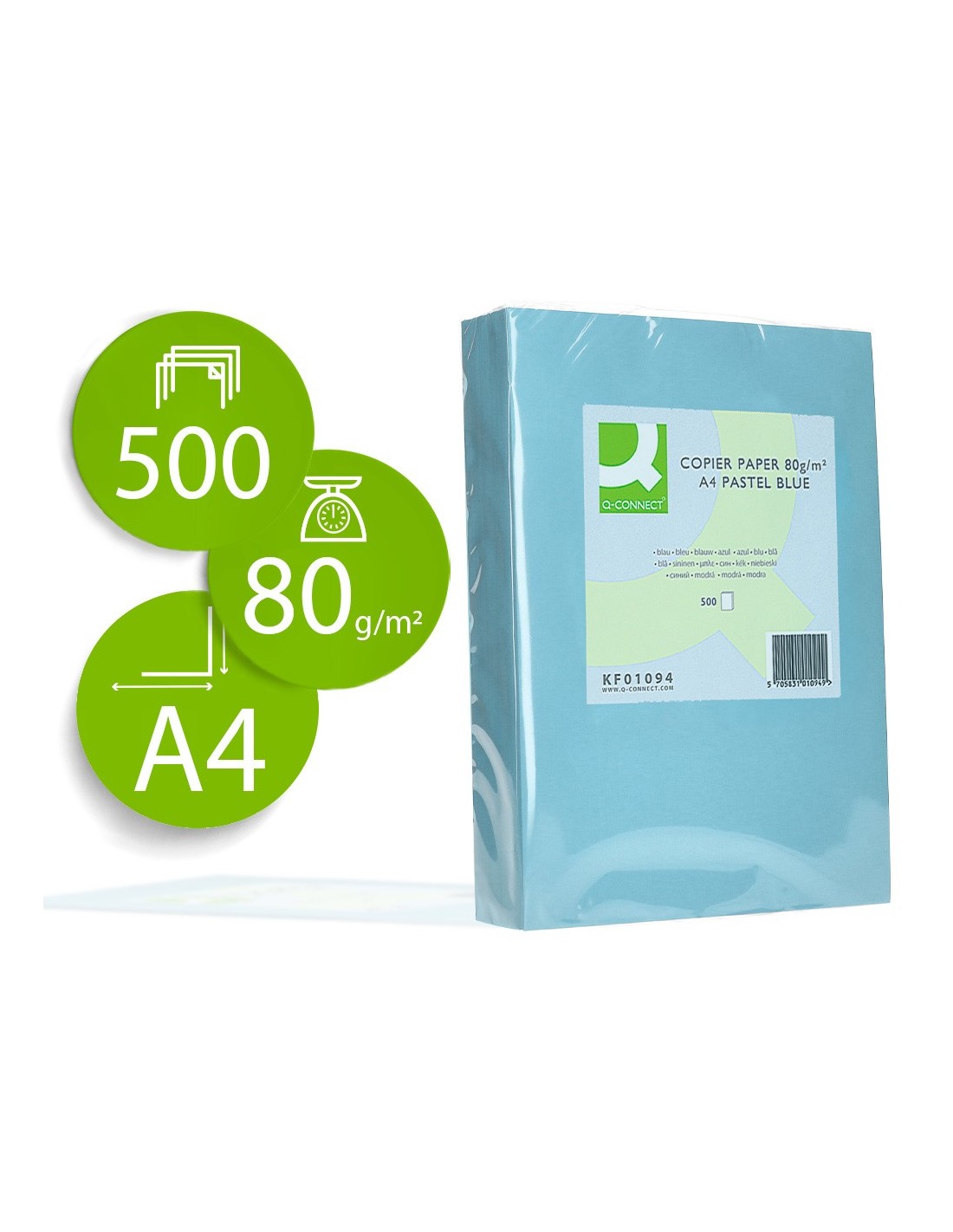 PAPEL COLOR Q-CONNECT DIN A4 80GR CELESTE PAQUETE DE 500 HOJAS