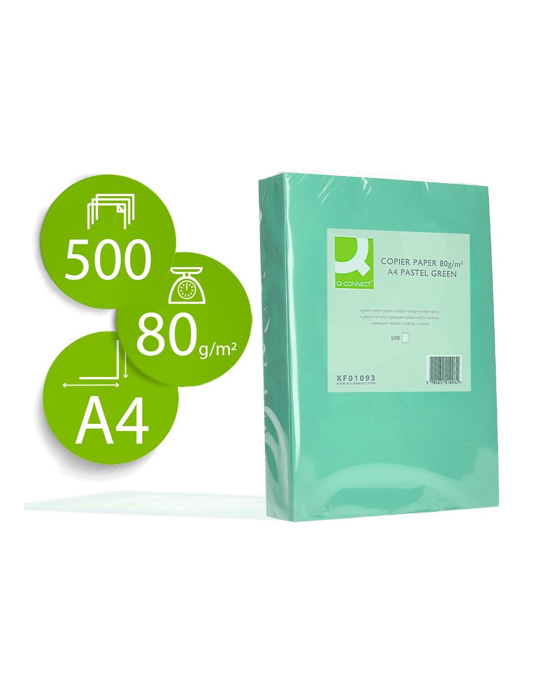 PAPEL COLOR Q-CONNECT DIN A4 80 GR VERDE PAQUETE DE 500 HOJAS