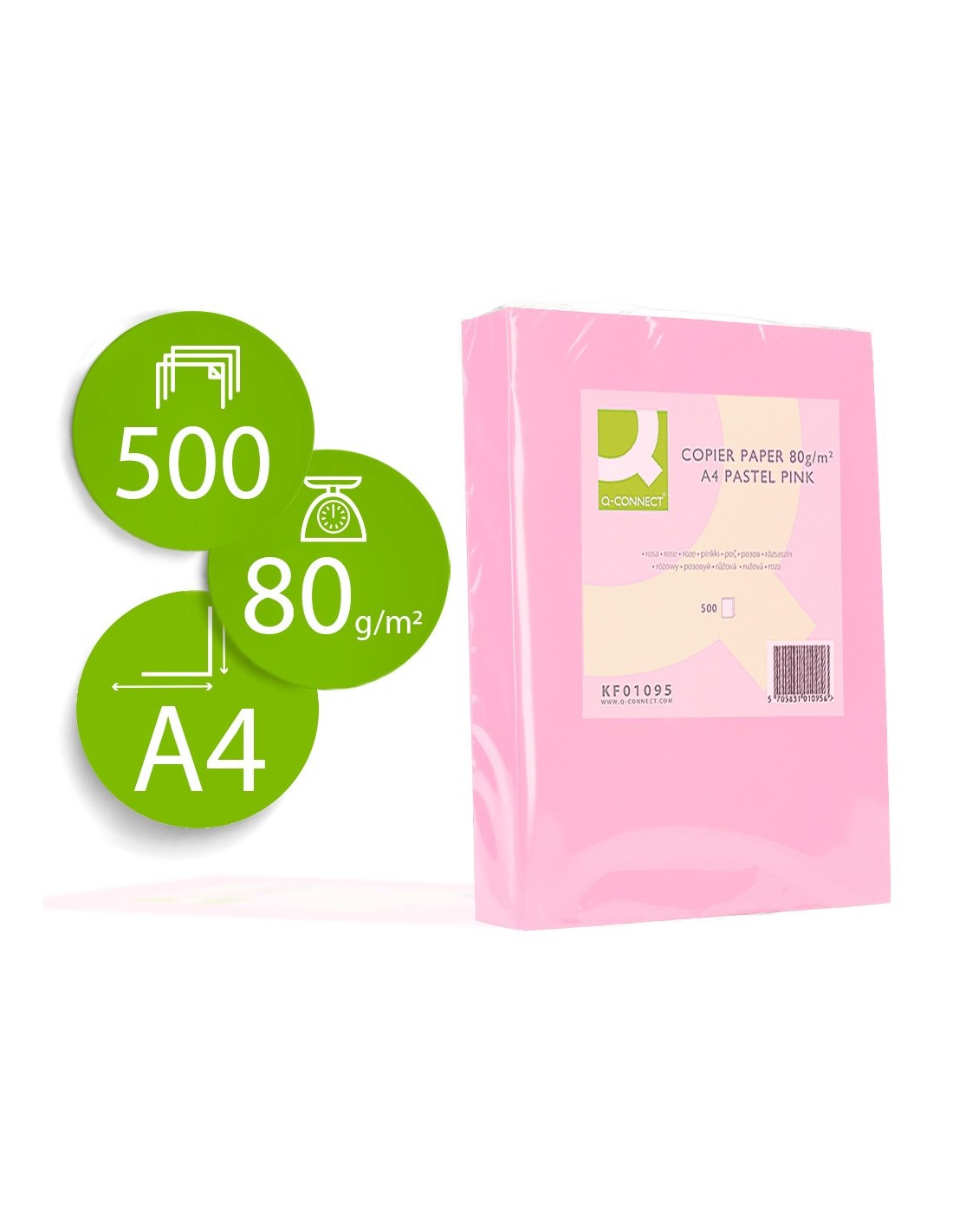 PAPEL COLOR Q-CONNECT DIN A4 80 GR ROSA PAQ. 500 HOJAS**130075