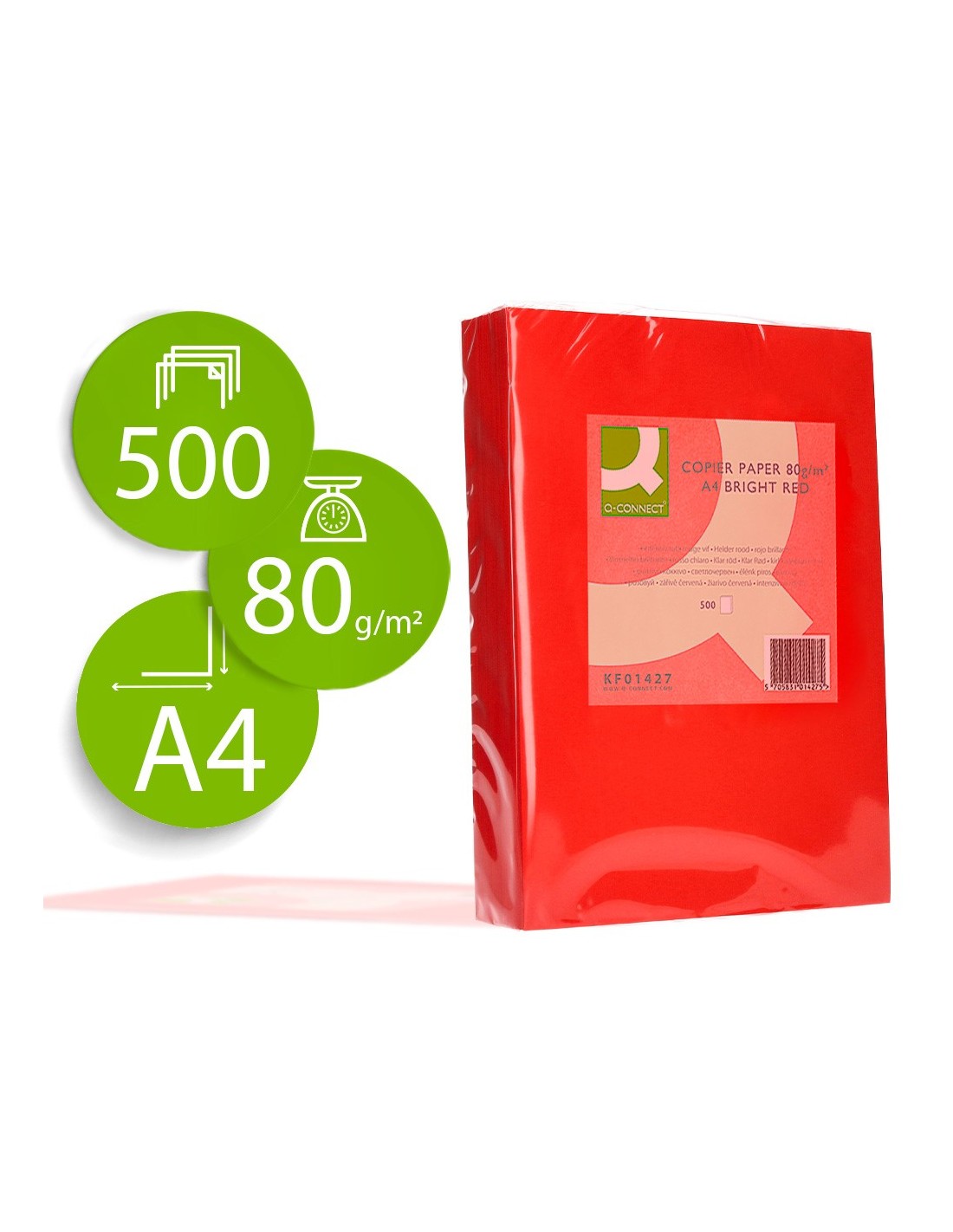 PAPEL COLOR Q-CONNECT DIN A4 80GR ROJO INTENSO PAQ 500 HOJAS**129956