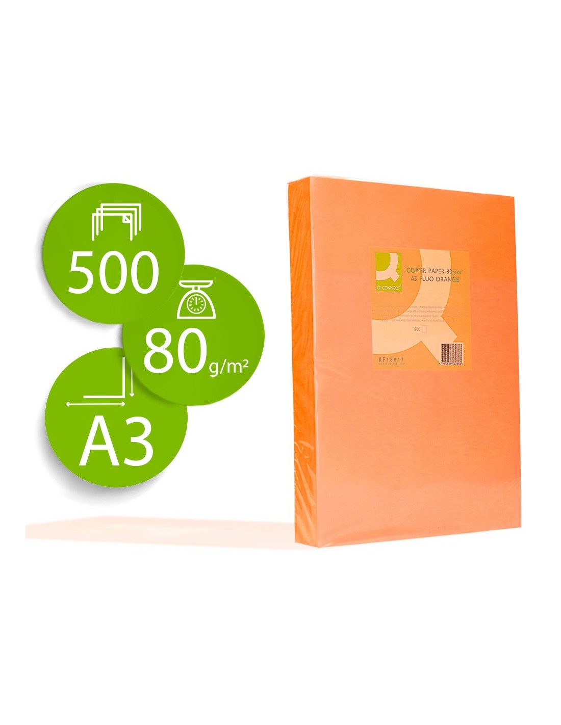 PAPEL COLOR Q-CONNECT DIN A3 80GR NARANJA NEON PAQUETE DE 500 HOJAS