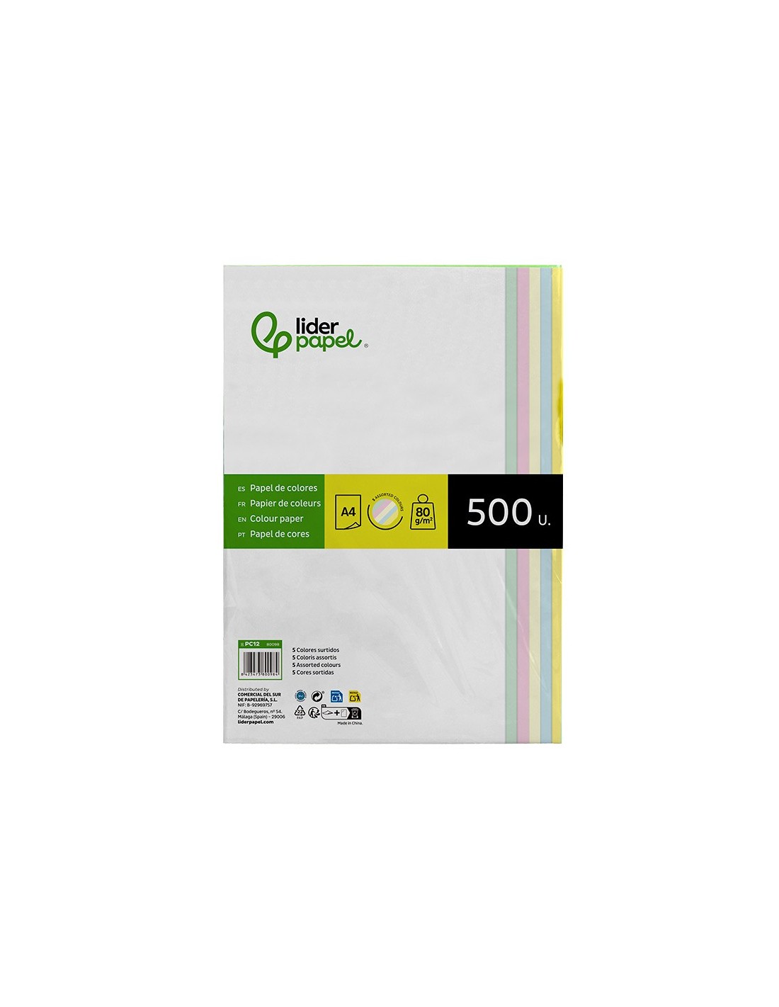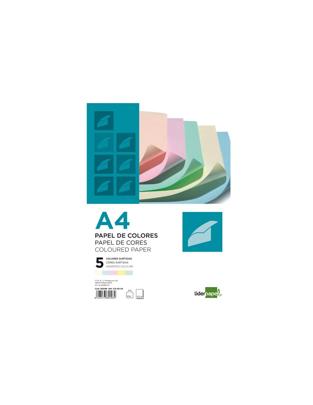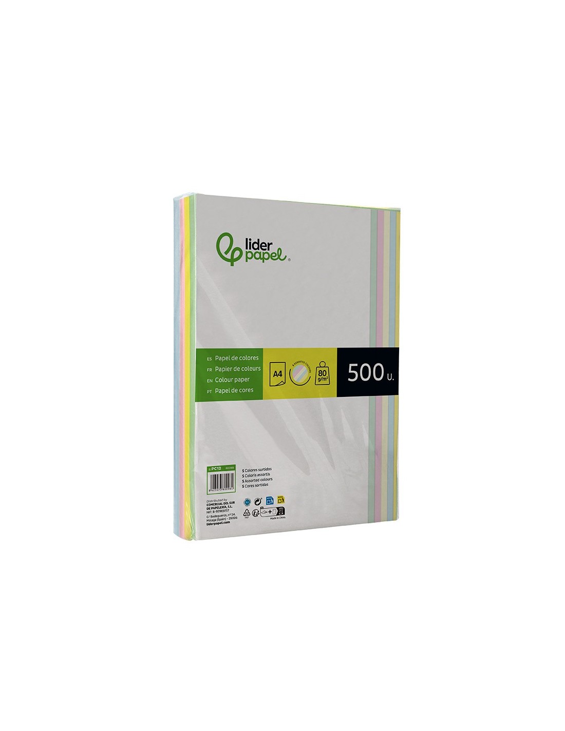 Idóneo para impresoras ink-jet, láser y fotocopiadoras. Colores surtidos. 100 hojas x 5 colores. Colores: amarillo, azul, crema, rosa y verde. Formato DIN A4. El paquete de 500 hojas.