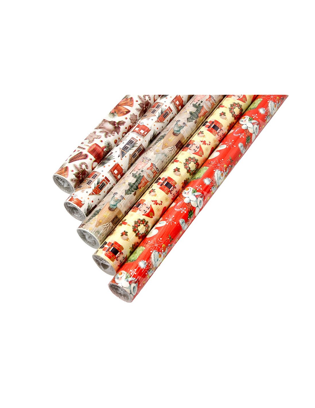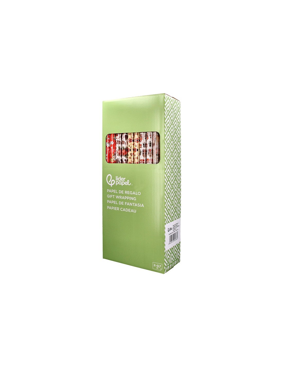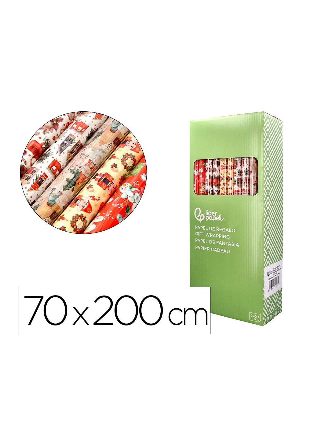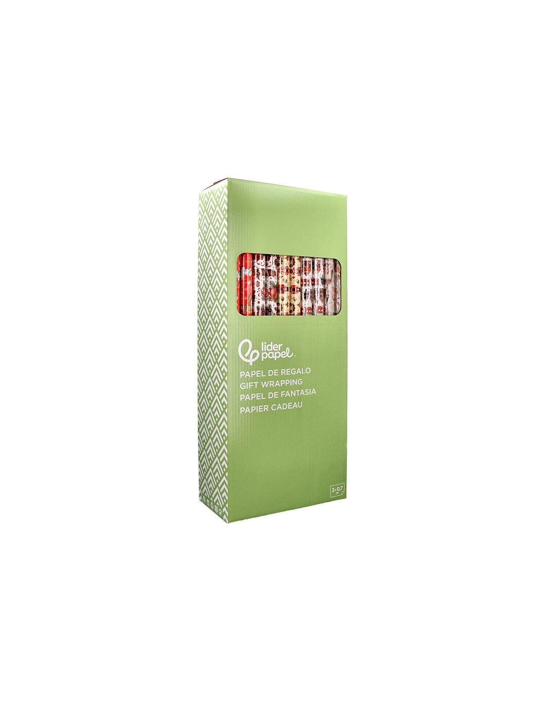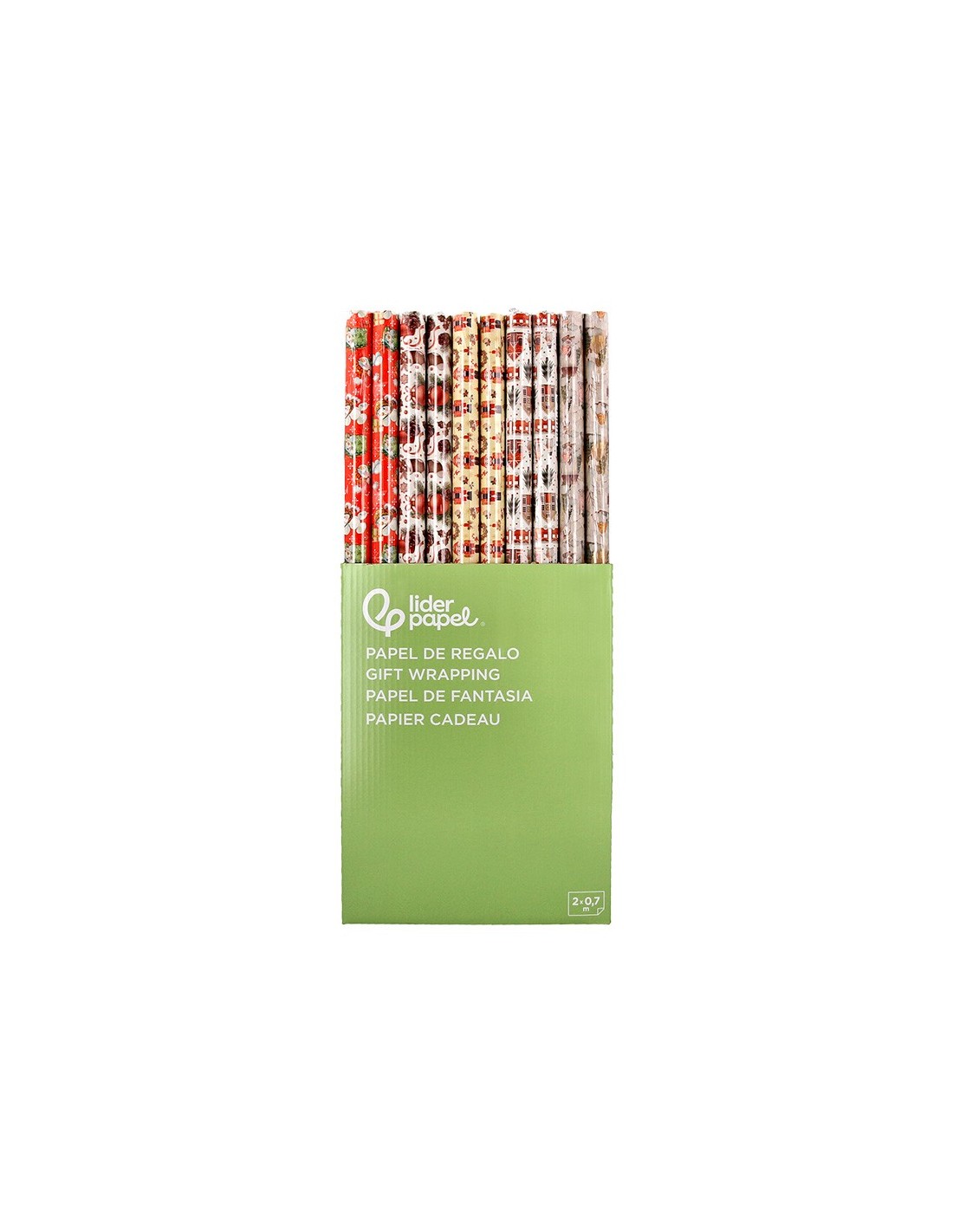 Papel de regalo Navidad. Rollo. Ancho 70 cm. Longitud 2 mt. Gramaje 60 gr.Presentación en caja expositora de 50 unidades diseños sutidos.