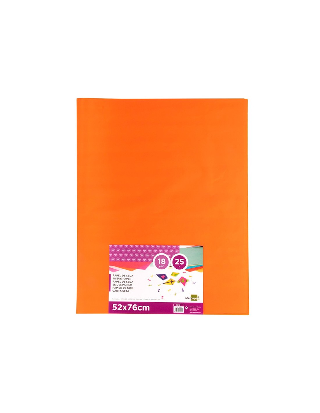 Gramaje: 18 g/m². Papel de seda, coloreado en masa, presentado en paquetes de 25 hojas. Aplicación: manualidades, decoración, etc. Medidas de la hoja: 52 x 76 cm.