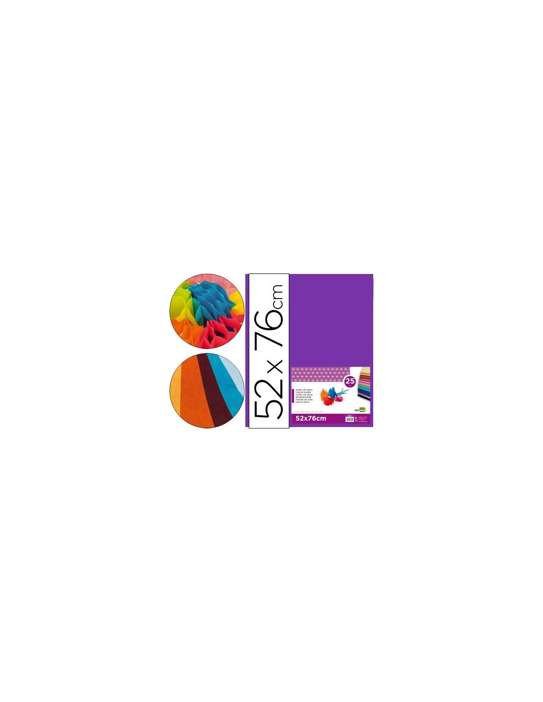 Gramaje: 18 g/m². Papel de seda, coloreado en masa, presentado en paquetes de 25 hojas. Aplicación: manualidades, decoración, etc. Medidas de la hoja: 52 x 76 cm.