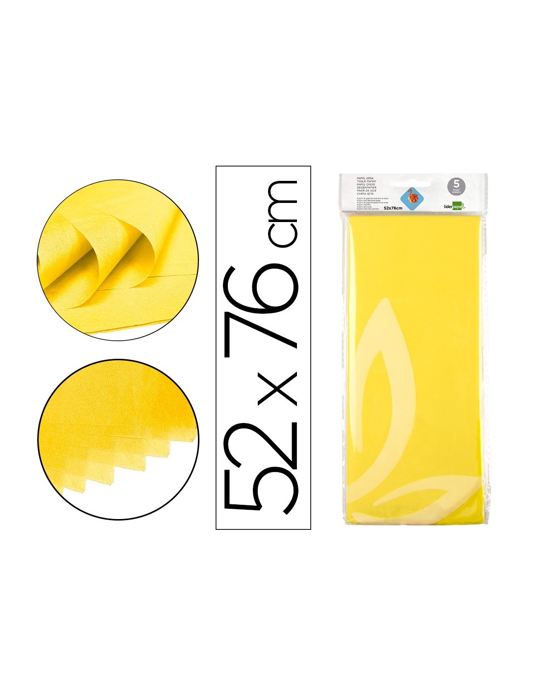Gramaje: 18 g/m². Aplicación: manualidades, decoración, etc. Colores muy vivos e intensos. Cómoda presentación en bolsas de celofán. Medidas de la hoja: 52 x 76 cm. La bolsa de 5 unidades.