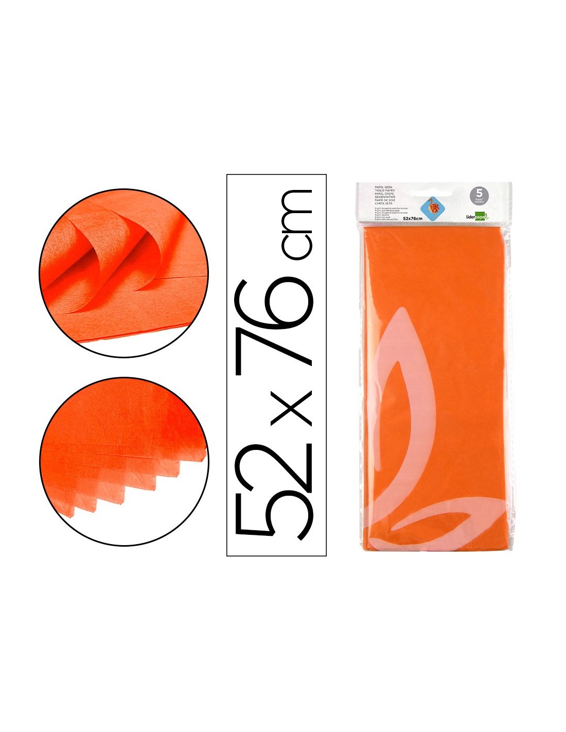 Gramaje: 18 g/m². Aplicación: manualidades, decoración, etc. Colores muy vivos e intensos. Cómoda presentación en bolsas de celofán. Medidas de la hoja: 52 x 76 cm. La bolsa de 5 unidades.