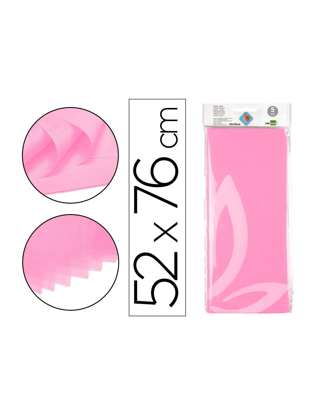 Gramaje: 18 g/m². Aplicación: manualidades, decoración, etc. Colores muy vivos e intensos. Cómoda presentación en bolsas de celofán. Medidas de la hoja: 52 x 76 cm. La bolsa de 5 unidades.