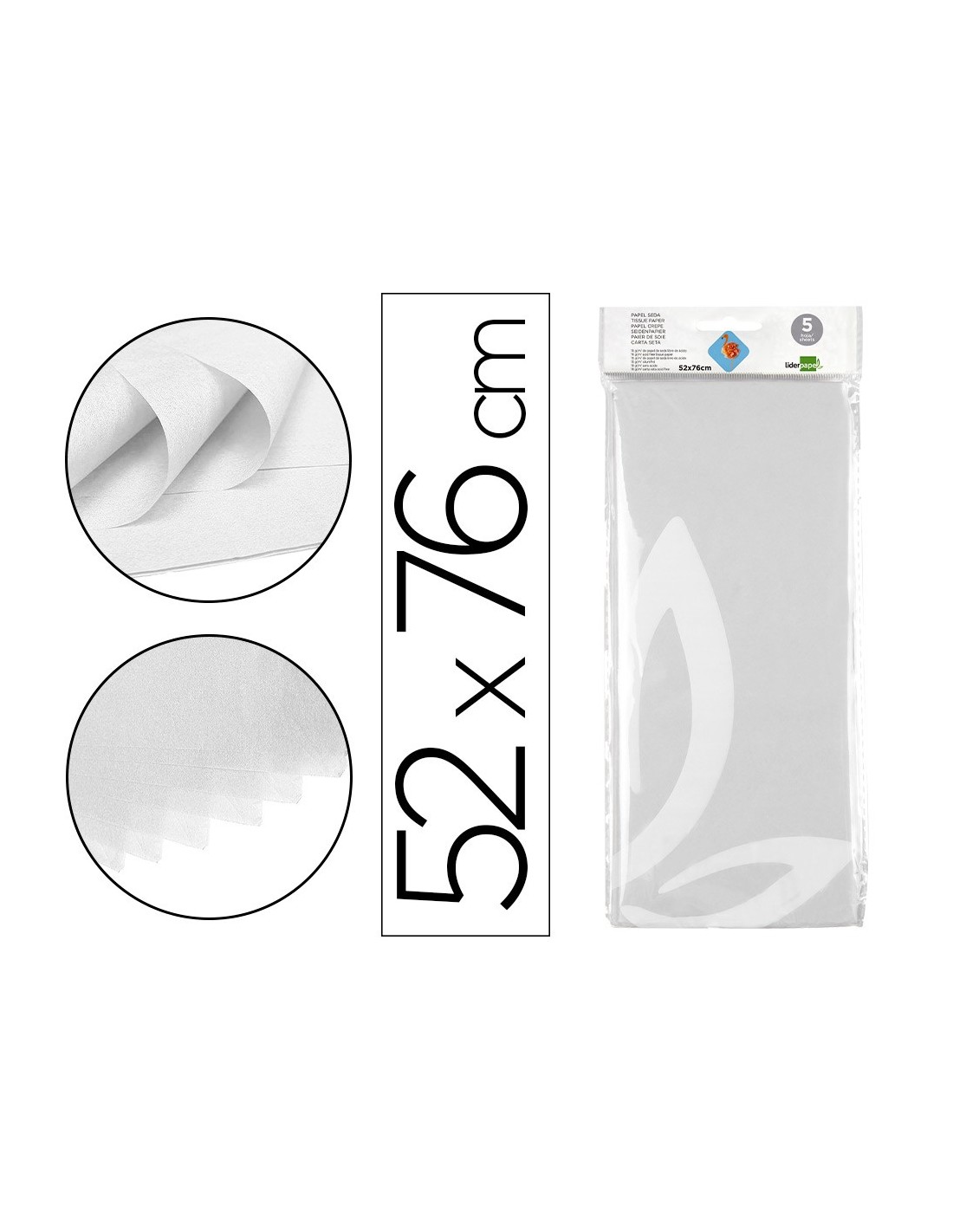 Gramaje: 18 g/m². Aplicación: manualidades, decoración, etc. Colores muy vivos e intensos. Cómoda presentación en bolsas de celofán. Medidas de la hoja: 52 x 76 cm. La bolsa de 5 unidades.