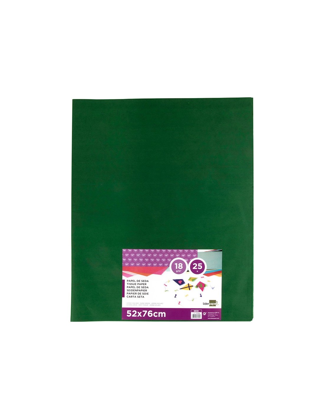 PAPEL SEDA LIDERPAPEL VERDE OSCURO 52X76CM 18 GR/M2 PAQUETE 25 HOJAS
