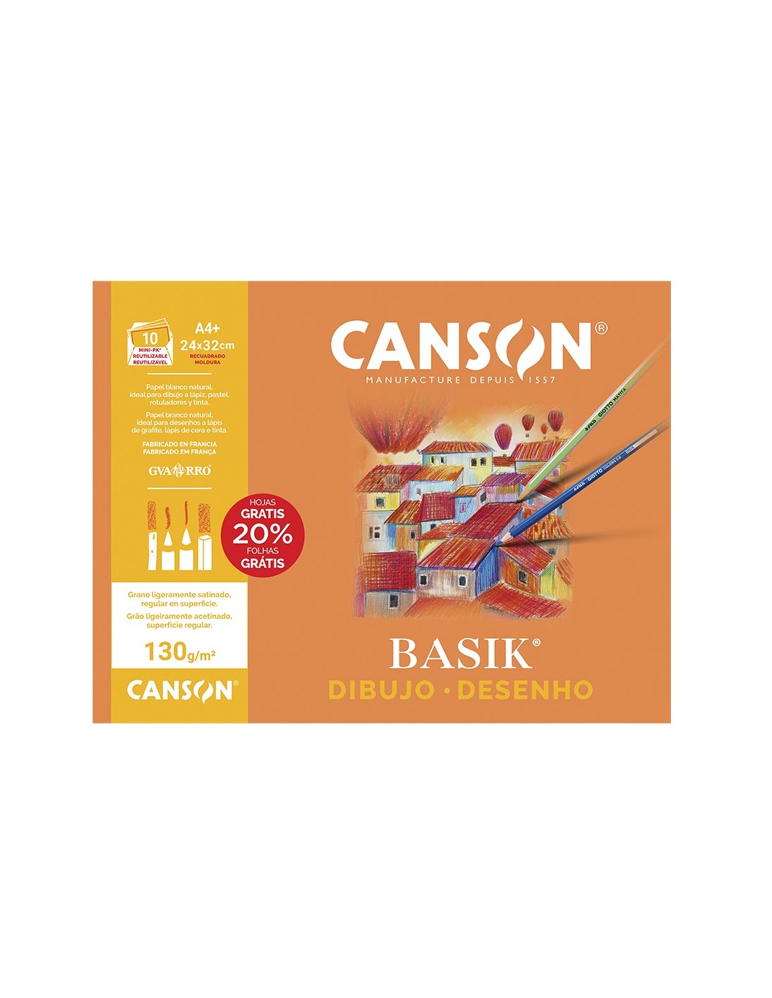 PAPEL DIBUJO BASIK 240X320 DIN A4 + 130 GR. C/RECUADRO MINIPACK 10 H.