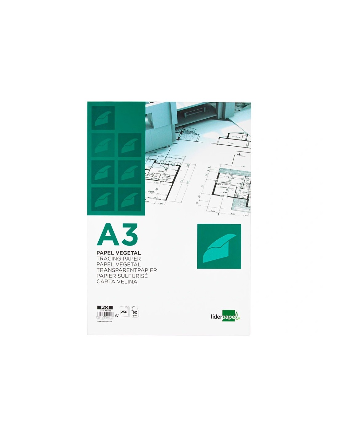 Papel vegetal de elevada transparencia y superficie regular y satinada. 90 g/m². Papel ideal para calcar dibujo a lápiz o tinta.