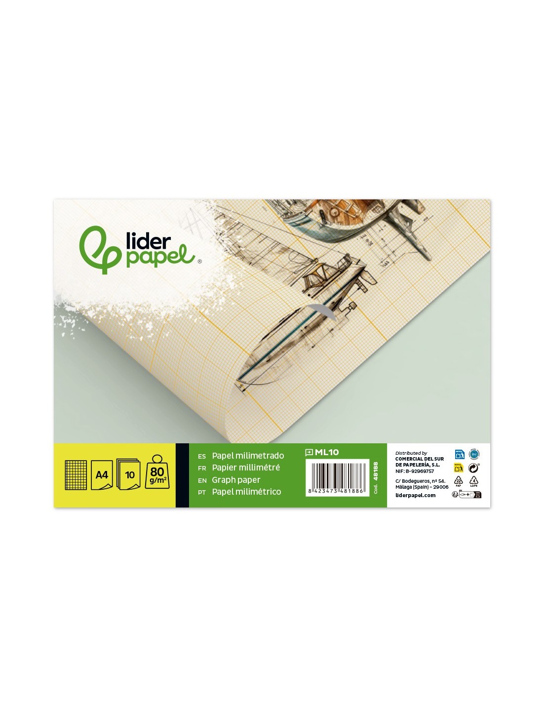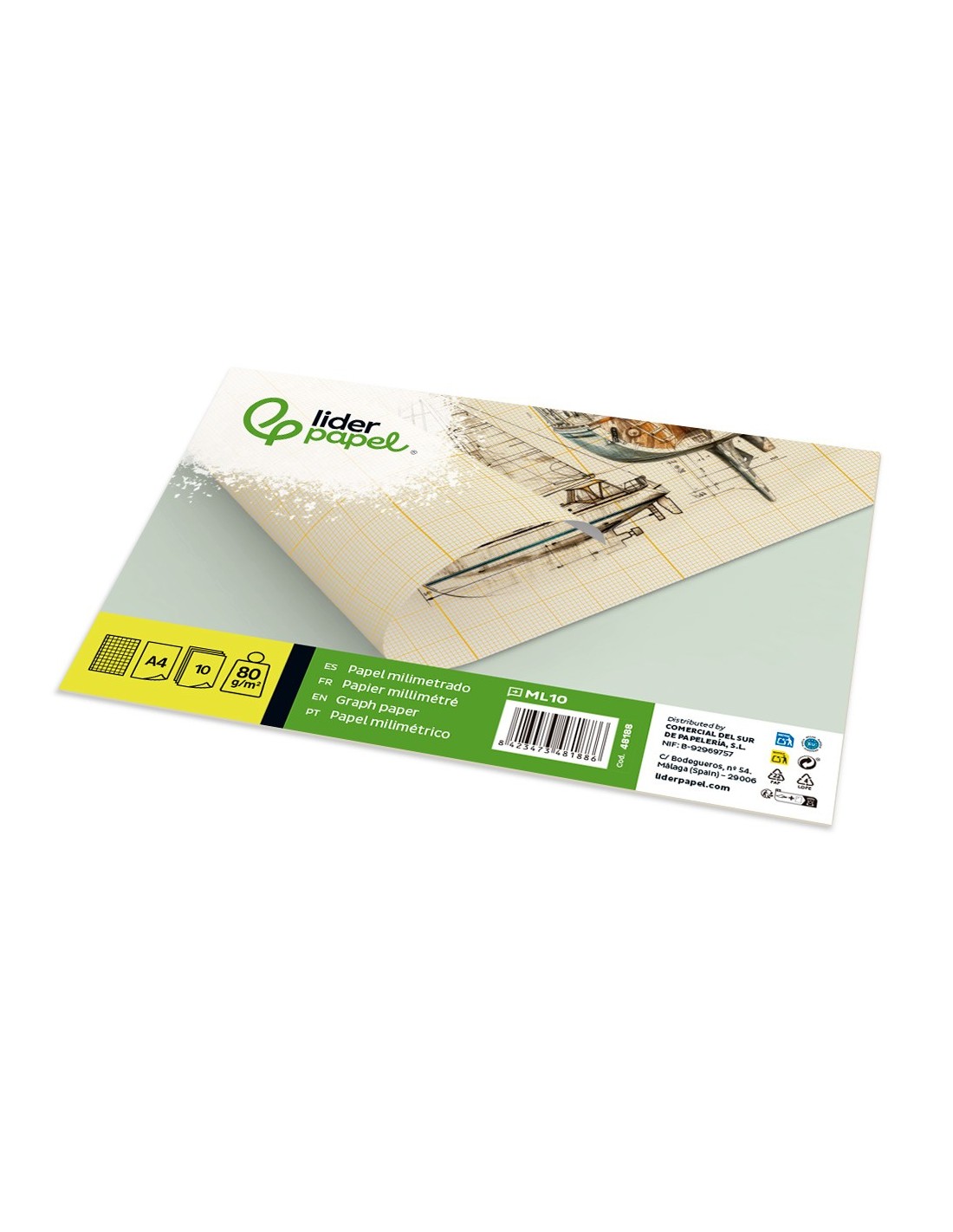 80 g/m². Milimetrado 1 mm. Din A4. El minipack de 10 hojas.