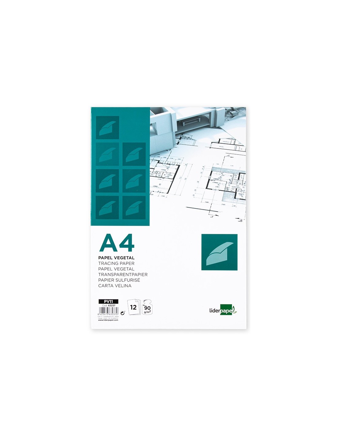PAPEL DIBUJO LIDERPAPEL A4 210X297MM 90G/M2 VEGETAL SOBRE 12 HOJAS