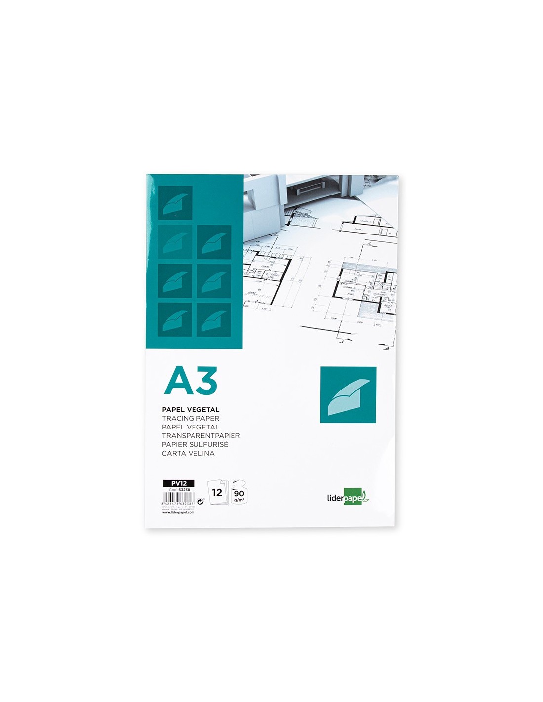 PAPEL DIBUJO LIDERPAPEL A3 297X420MM 90G/M2 VEGETAL SOBRE 12 HOJAS